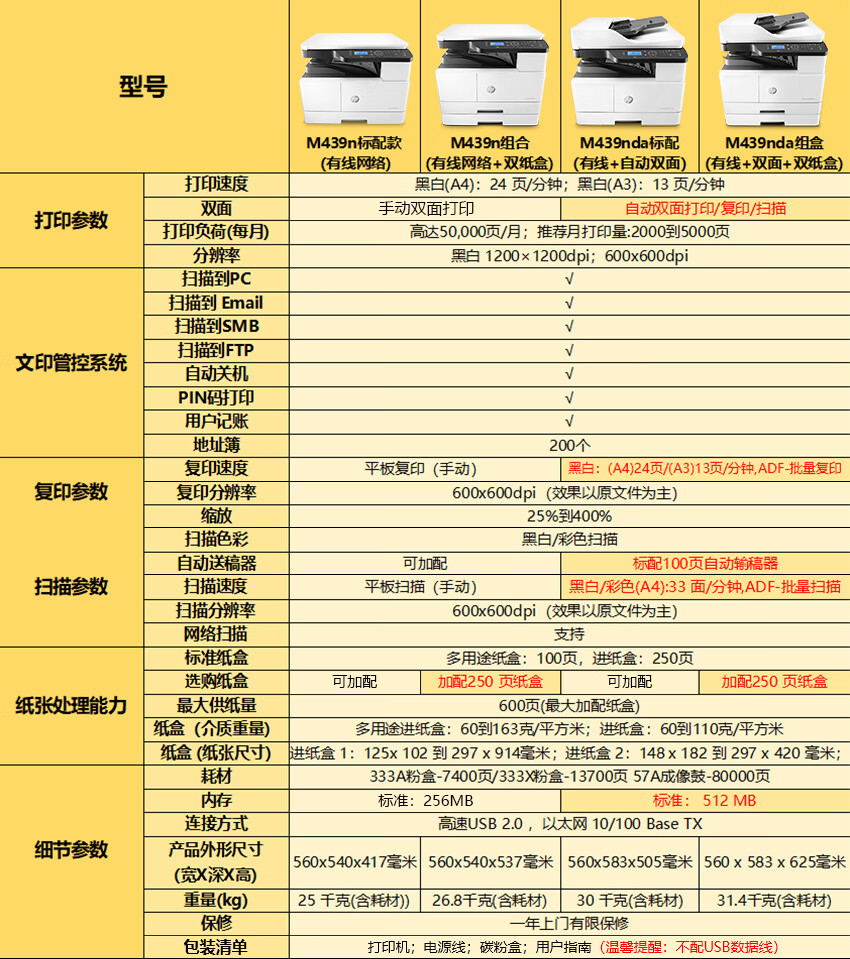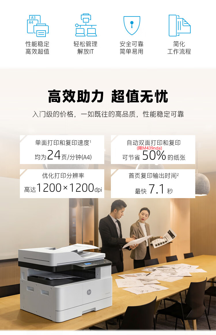 · 商品名稱:惠普HP a3a4打印機一體機黑白激光復合機復印機自動雙面 打印復印掃描 M439nda標配(有線網(wǎng)絡+自動雙面)