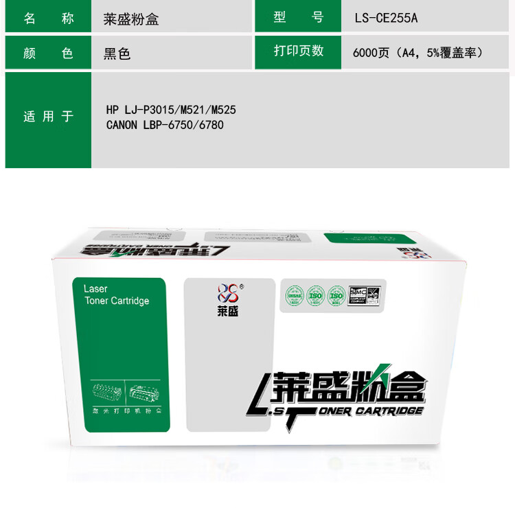 萊盛 LS-CE255A 硒鼓 黑色 適用于 HP LJ-P3015/M521/M525,CANON LBP-6750/6780 自營(yíng)