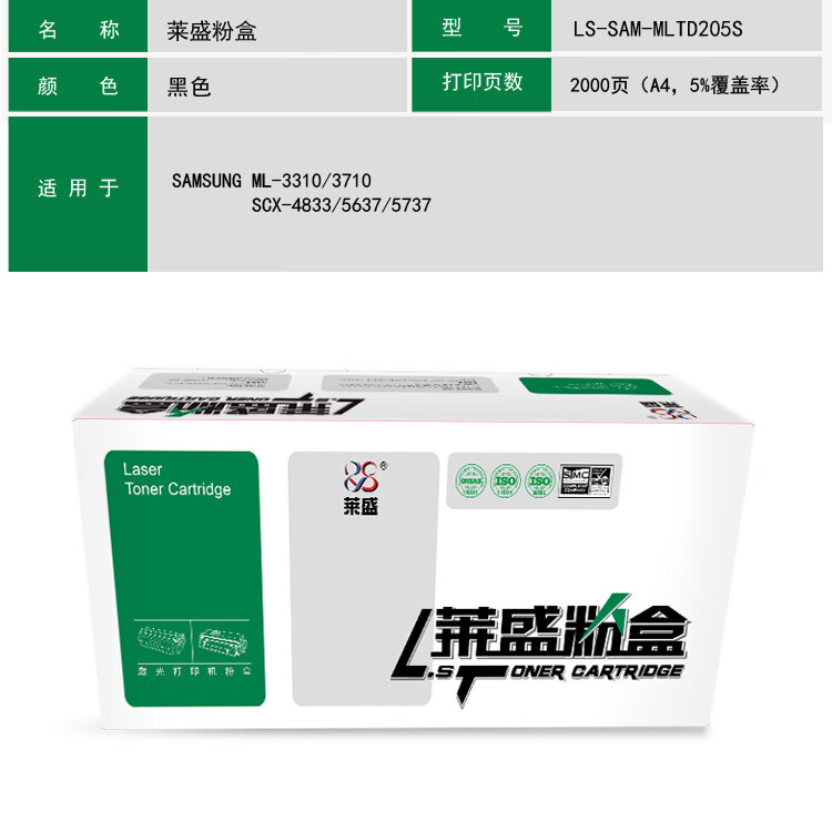 萊盛 LS-SAM-MLTD205S 硒鼓 黑色 適用于 三星SAMSUNG ML-3310/3710,SCX-4833/5637/5737 自營