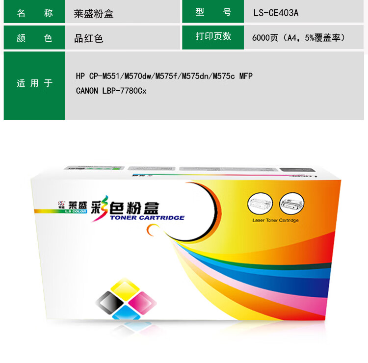 萊盛 LS-CE403A 硒鼓粉盒 品紅色 適用于HP CP-M551/M570dw/M575f/M575dn/M575c MFP,CANON LBP-7780Cx 自營