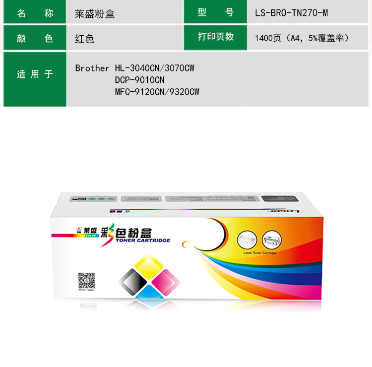 萊盛 LS-BRO-TN270-M 粉盒 紅色 適用于BROTHER HL-3040CN/3070CW,DCP-9010CN,MFC-9120CN/9320CW 自營
