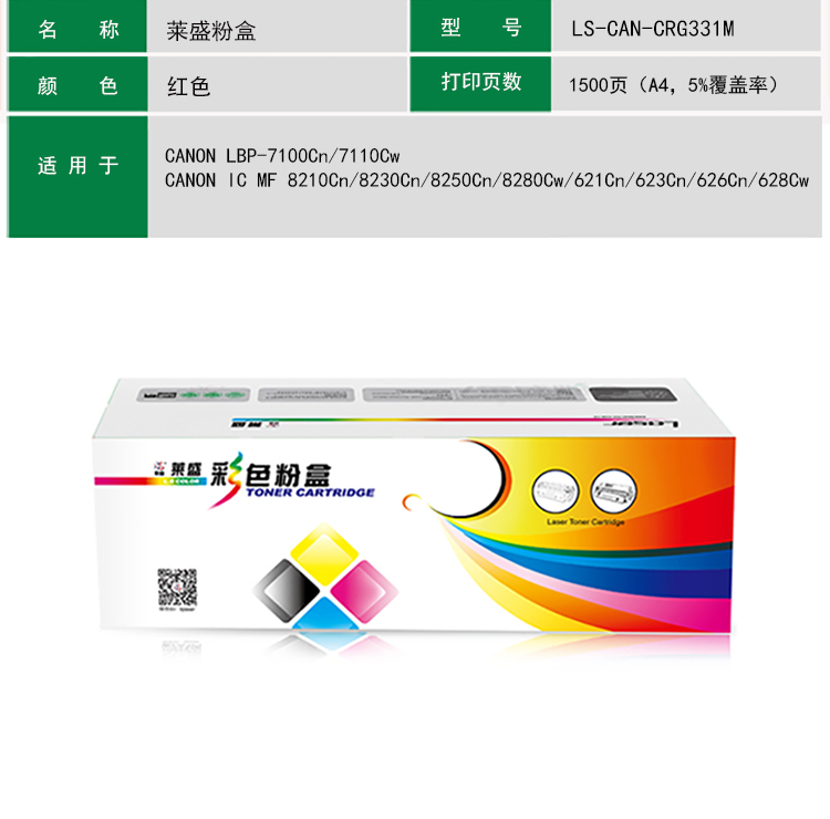 萊盛 LS-CAN-CRG331M 硒鼓粉盒 適用于佳能CANON LBP-7100/7110,IC MF 8210/8230/623/628紅色 自營(yíng)