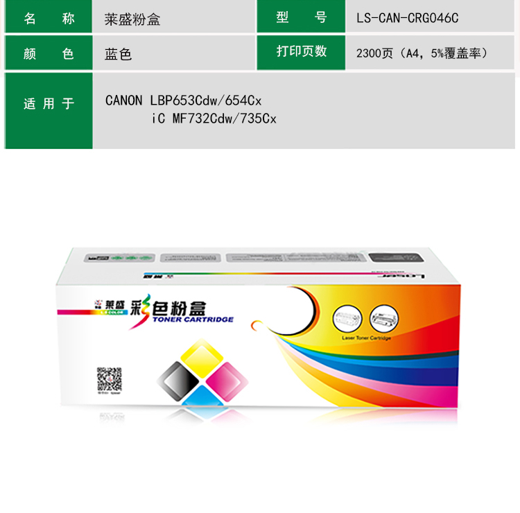 萊盛 LS-CAN-CRG046C 硒鼓粉盒 適用于佳能CANON LBP653Cdw/654Cx,iC MF732Cdw/735Cx青色 自營(yíng)