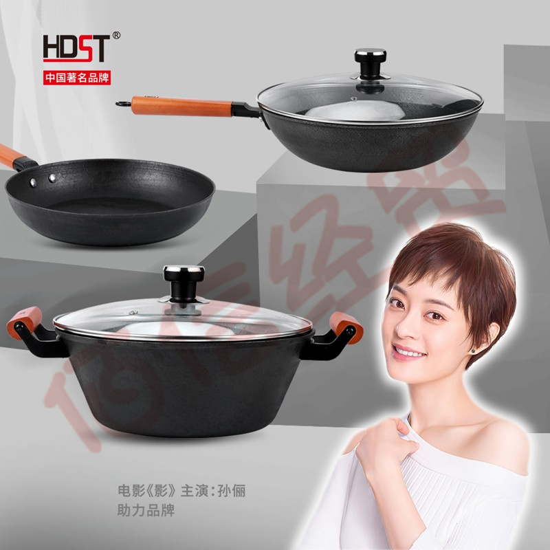 HDST 匠釜 生鐵炒菜鍋鑄鐵無涂層爐灶通用不粘鍋煎鍋平底鍋燉湯鍋禮品套裝 五件套裝 JF-20128 自營