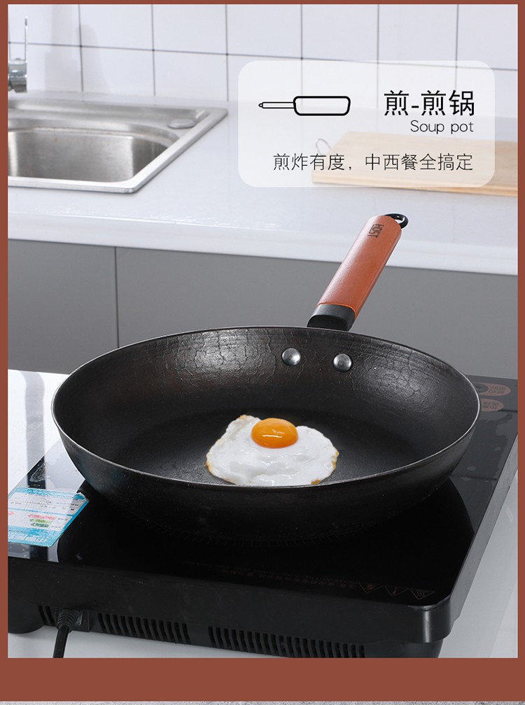 產(chǎn)品特點:  鍋體精選生鐵為原材料,鍋身厚底薄壁設(shè)計,物理抗粘,少油煙。木質(zhì)防滑手柄,防燙,耐用舒適。上蓋采用鋼化可視玻璃蓋,鍋蓋采用定時溫顯鍋珠。