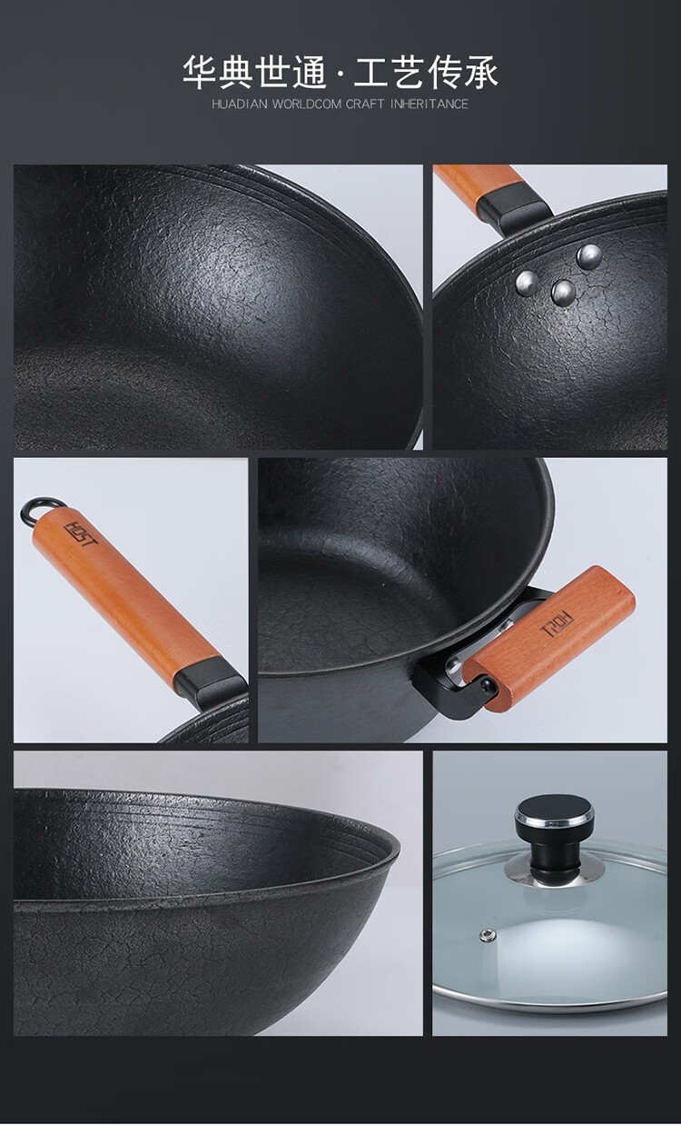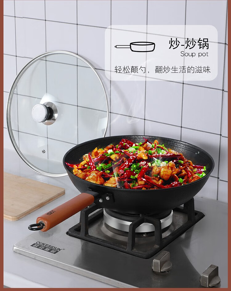 產(chǎn)品特點:  鍋體精選生鐵為原材料,鍋身厚底薄壁設(shè)計,物理抗粘,少油煙。木質(zhì)防滑手柄,防燙,耐用舒適。上蓋采用鋼化可視玻璃蓋,鍋蓋采用定時溫顯鍋珠。