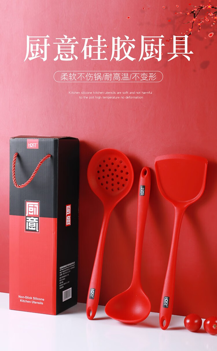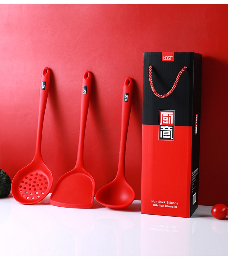 HDST 廚意 硅膠鍋鏟套裝 耐高溫防燙不粘鍋硅膠勺硅膠鏟硅膠漏勺三件套 CY-20103 自營