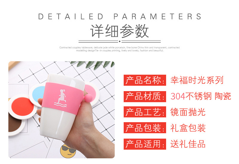 產(chǎn)品特點(diǎn):  勺子食品級(jí)304不銹鋼鏡面拋光,杯子骨瓷材質(zhì),質(zhì)感輕薄耐用,食品級(jí)硅膠杯套,可掛勺子,方便收納。原創(chuàng)設(shè)計(jì),專利保護(hù)。