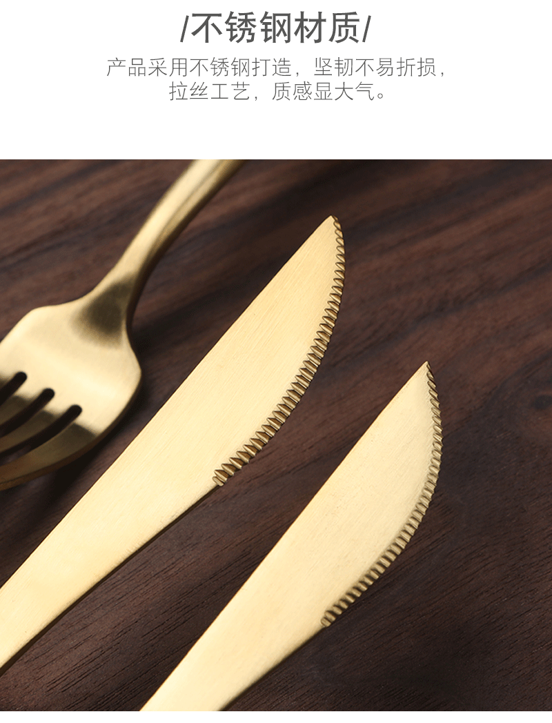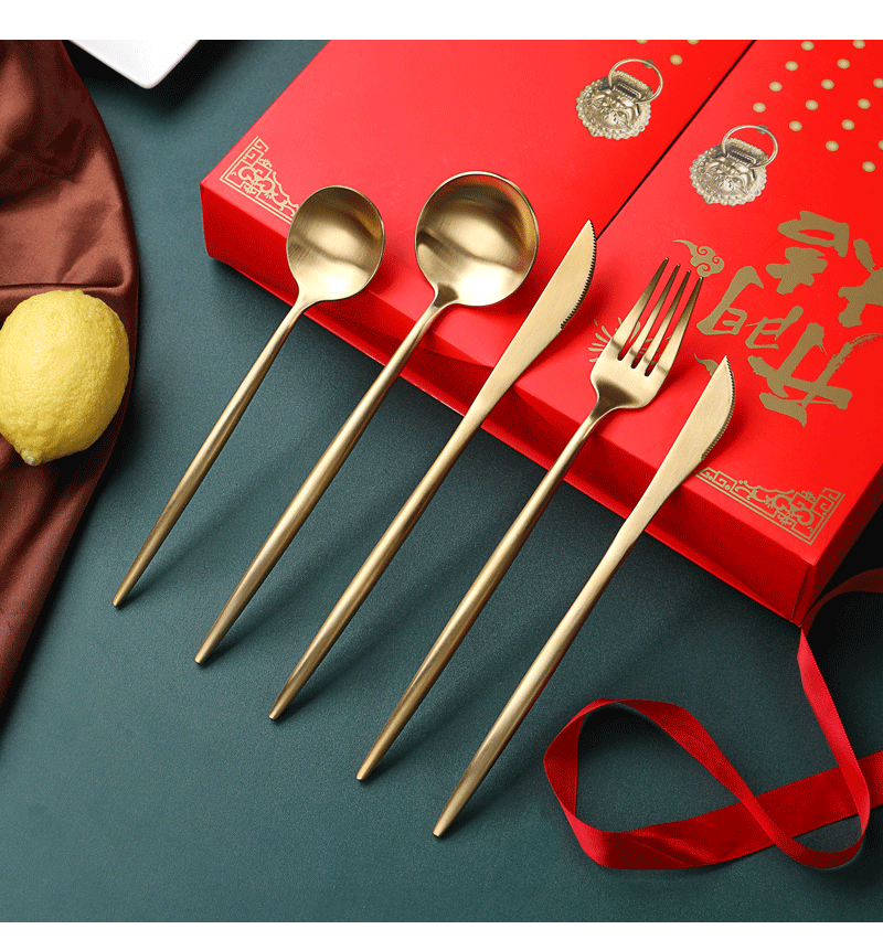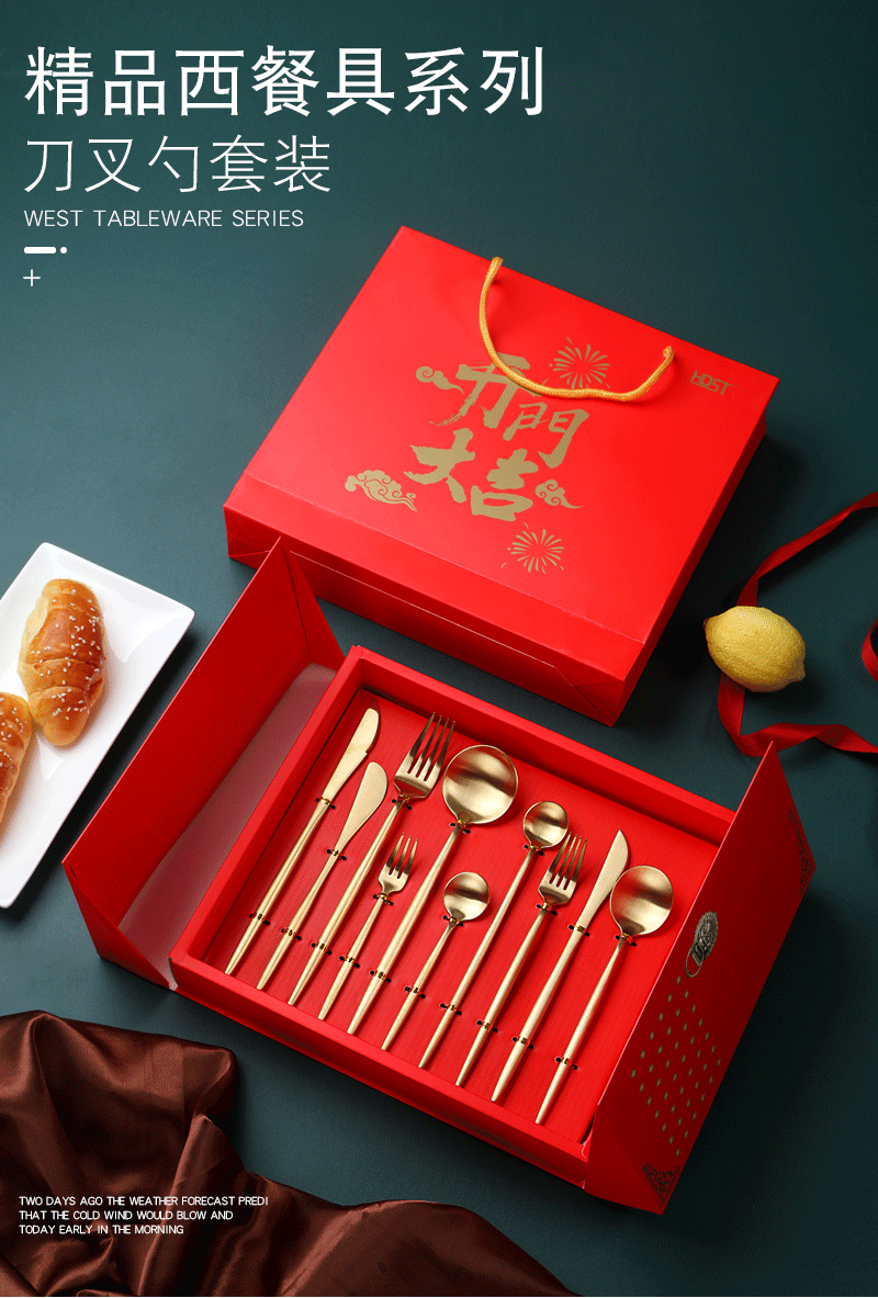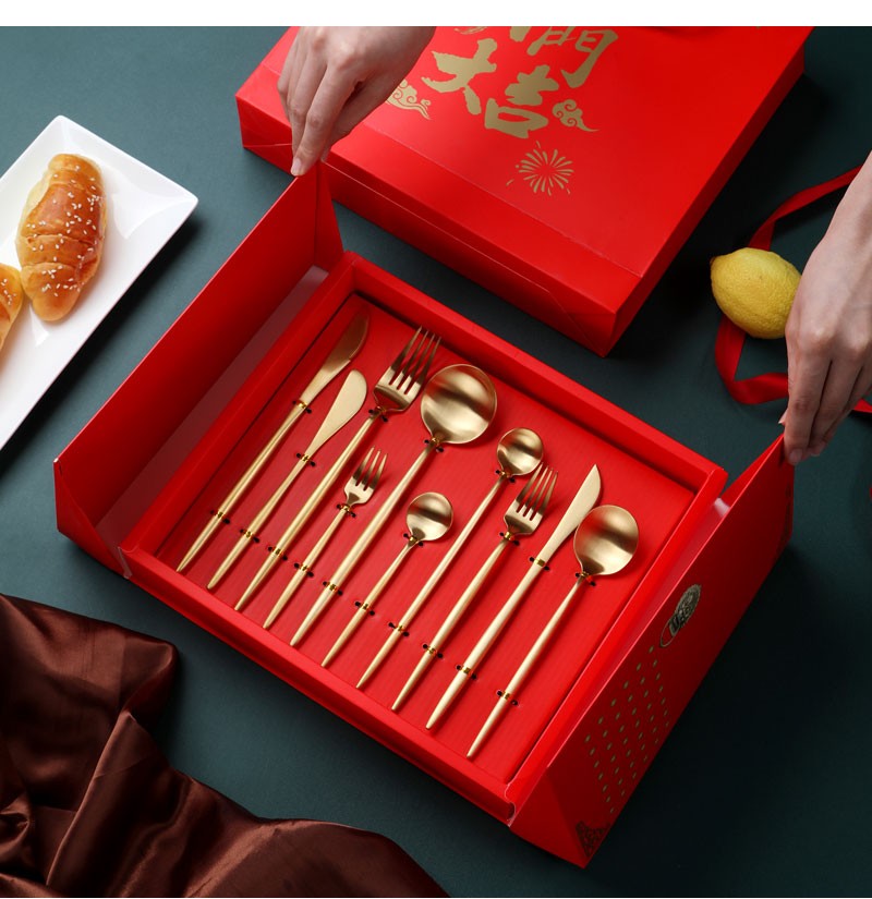 產(chǎn)品特點(diǎn): 食品級(jí)304不銹鋼拉絲效果,安全衛(wèi)生,耐腐蝕表面鈦金工藝。圖案可定制,可激光打標(biāo)。盒子開(kāi)門(mén)方式打開(kāi),國(guó)際最流行西餐具款式。
