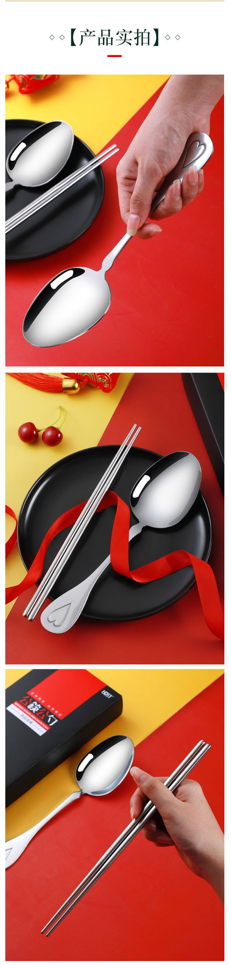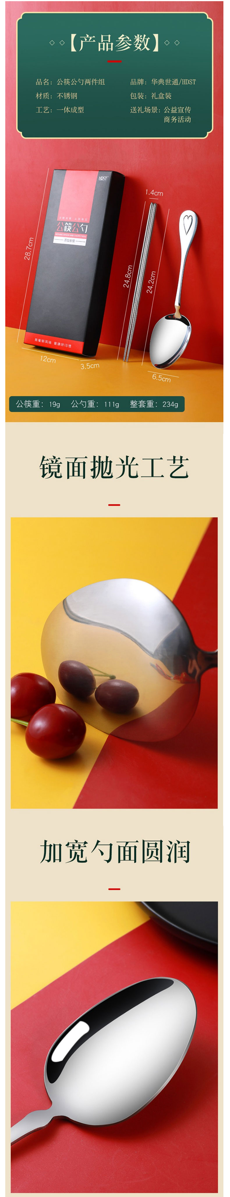 HDST 公筷公勺 不銹鋼公用勺筷套裝分菜分餐勺公勺公筷家用套裝酒店餐廳 兩件組 KS-20106 自營