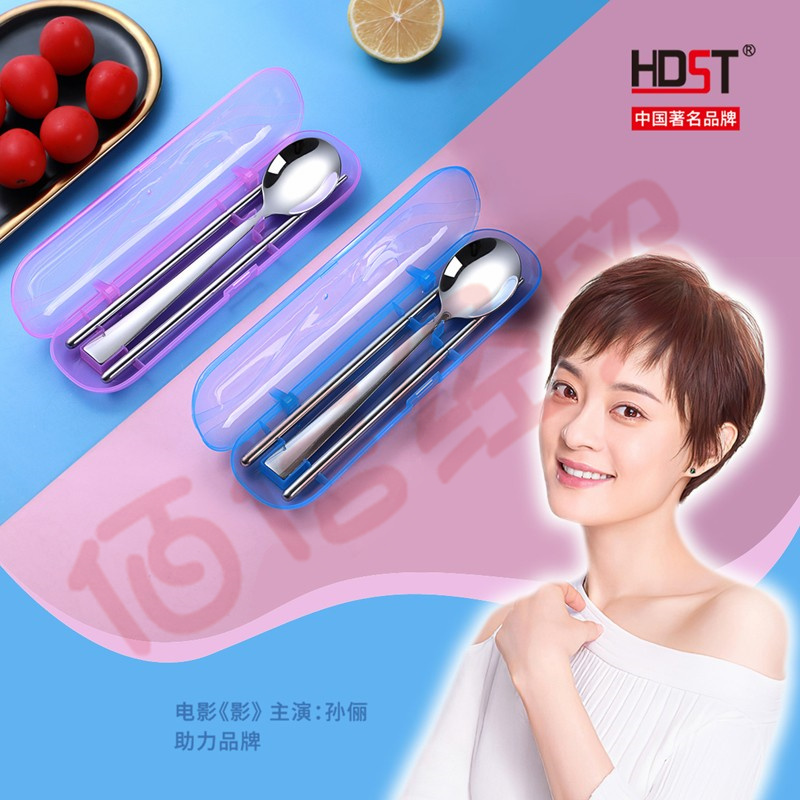 HDST 臻享 便攜餐具套裝 不銹鋼筷子勺子2件組成人學(xué)生旅行便攜禮盒裝 ZX-1915 紫色盒 自營(yíng)