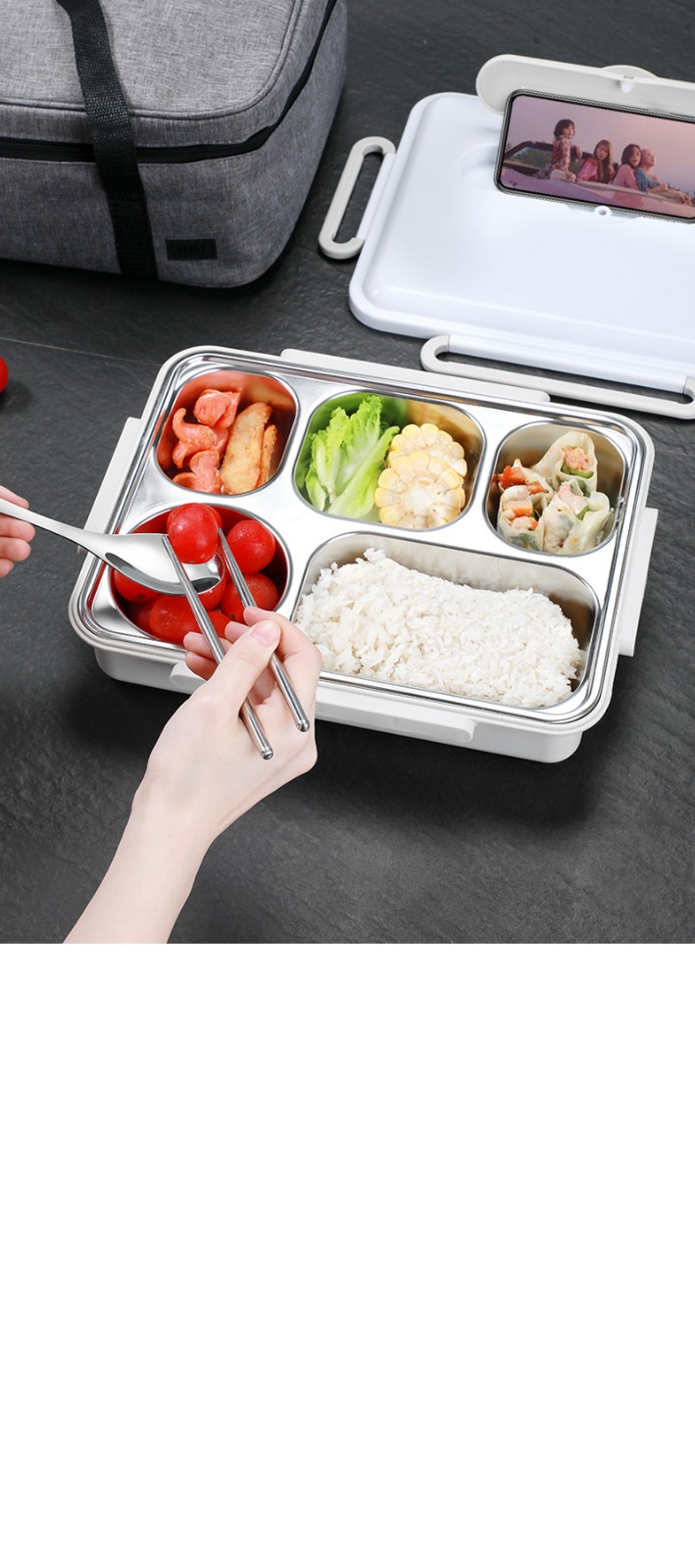 產(chǎn)品特點(diǎn): .食品級(jí)PP塑料材質(zhì),18/8不銹鋼分格餐盤(pán),蓋子鎖扣設(shè)計(jì)嚴(yán)密,牢固不脫落。 配套保溫保暖餐包,便攜不銹鋼勺筷套裝,干凈衛(wèi)生。
