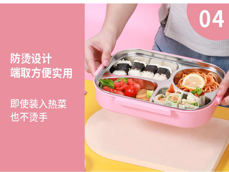產(chǎn)品特點(diǎn): .食品級(jí)PP塑料材質(zhì),18/8不銹鋼分格餐盤,蓋子鎖扣設(shè)計(jì)嚴(yán)密,牢固不脫落。 配套保溫保暖餐包,便攜不銹鋼勺筷套裝,干凈衛(wèi)生。