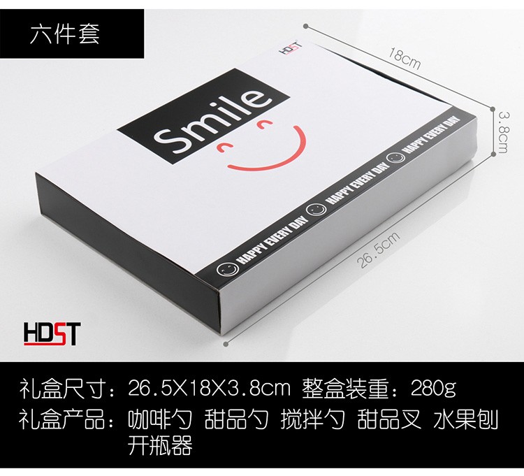 HDST 不銹鋼笑臉餐具套裝叉勺筷創(chuàng)意禮品送女生閨蜜男女朋友生日禮物定制活動送客戶紀念品 黑白smile禮盒-5件組 DT-20144 自營
