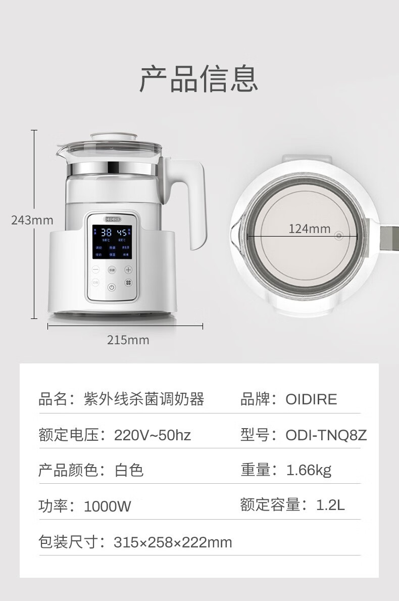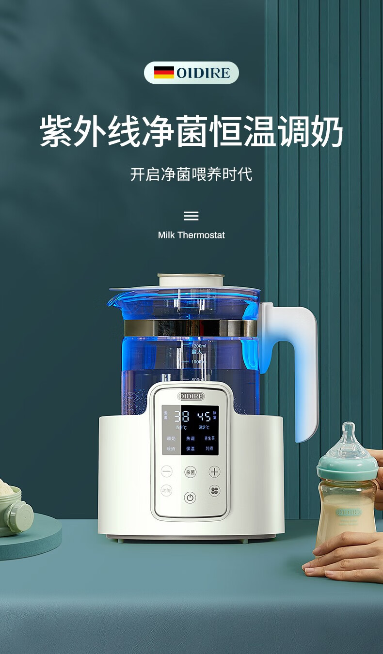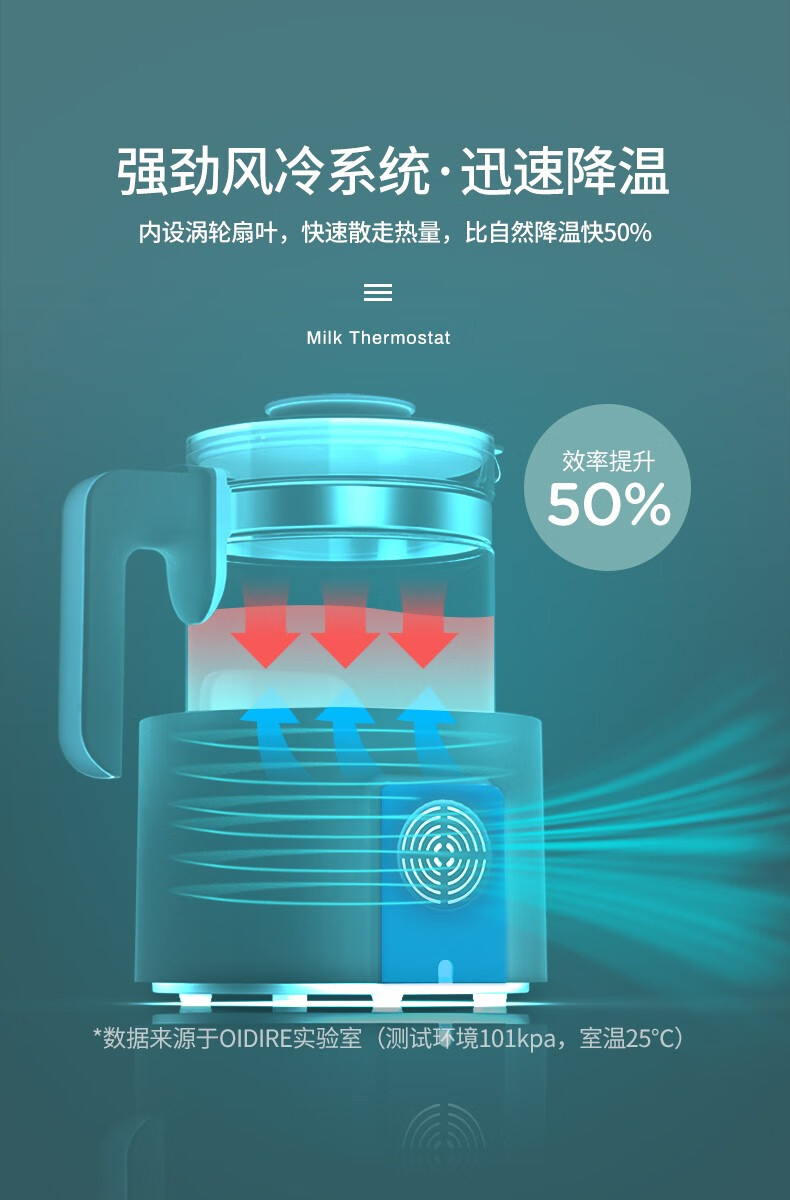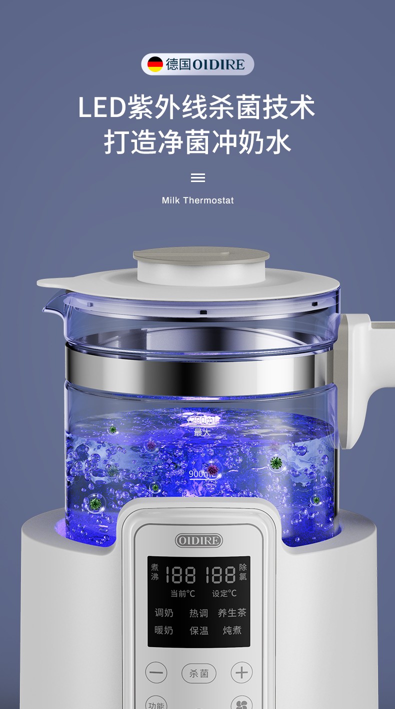 德國OIDIRE 恒溫水壺調(diào)奶器溫奶器 嬰兒熱水沖泡奶壺紫外線消毒玻璃水壺 316不銹鋼風(fēng)扇降溫(基礎(chǔ)款) 自營