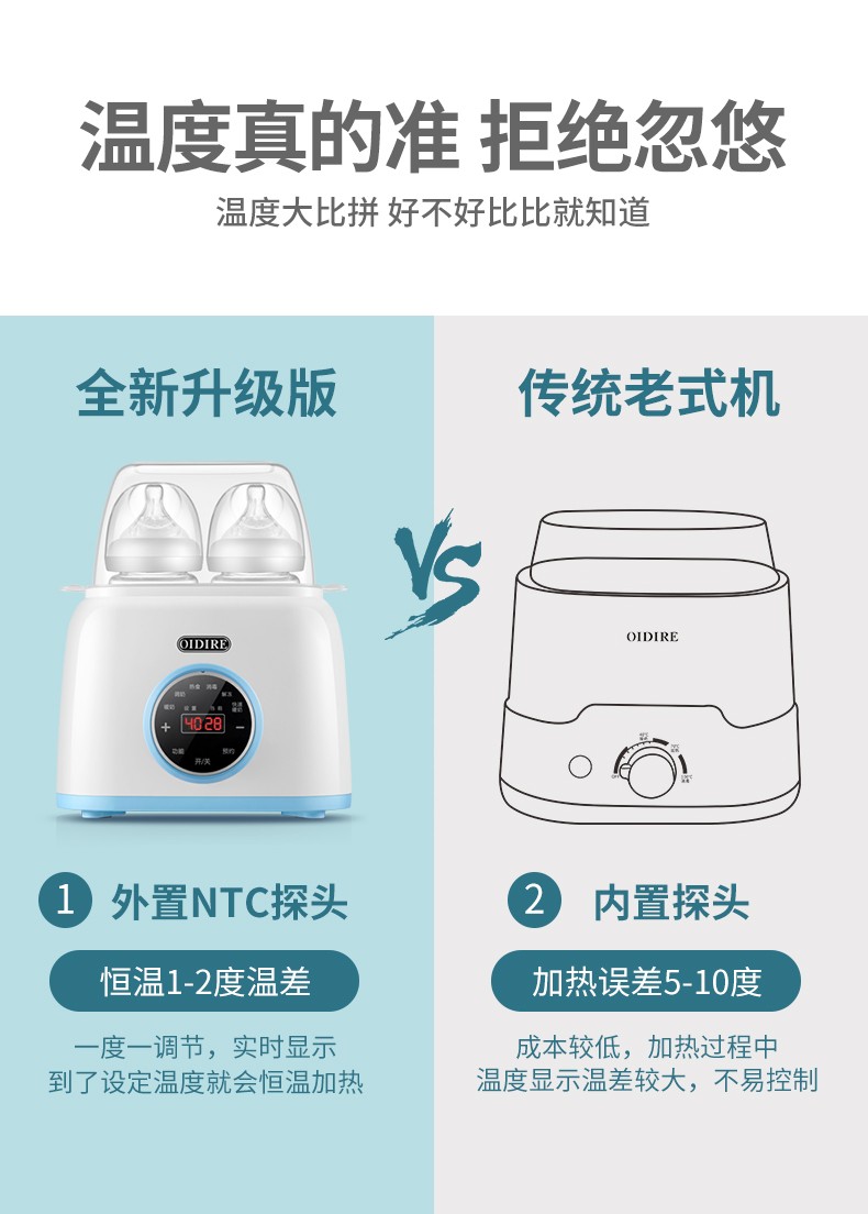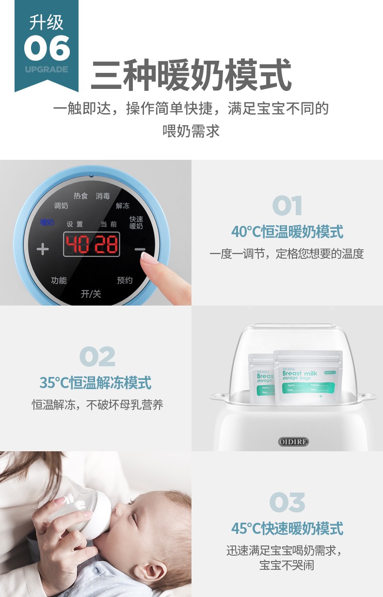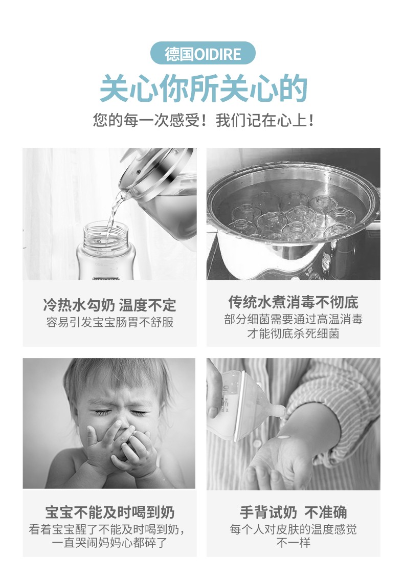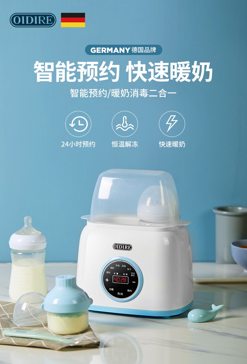 德國 OIDIRE 暖奶器 奶瓶溫奶器消毒器二合一 寶寶熱奶器恒溫壺神器嬰兒多功能調(diào)奶器蒸汽消毒機(jī) AI智能-布魯白 自營