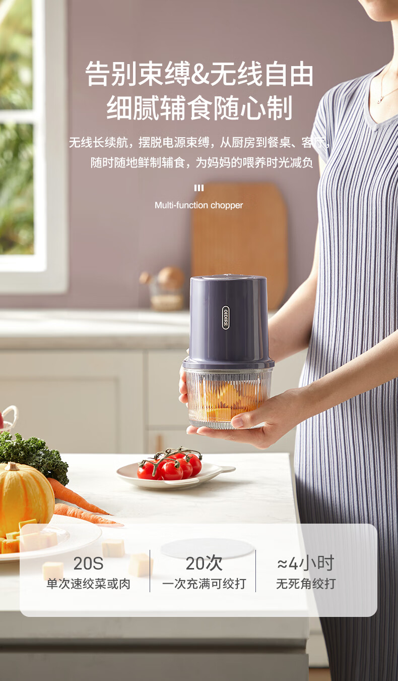 德國 OIDIRE 嬰兒輔食機 小型絞肉機 多功能輔食絞肉機嬰兒寶寶專用料理機果蔬肉泥攪打機 ODI-QSJ20 巴洛紫 經(jīng)典款 自營