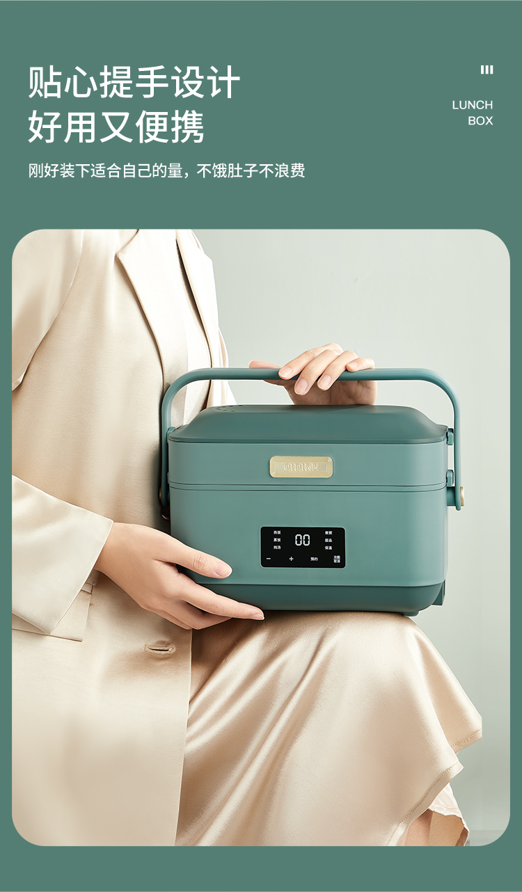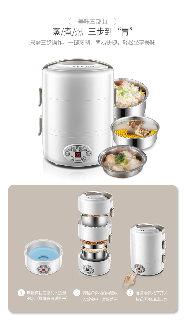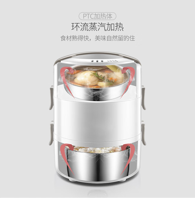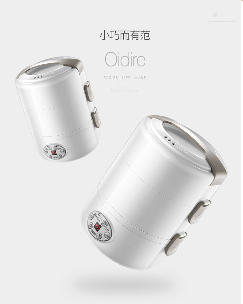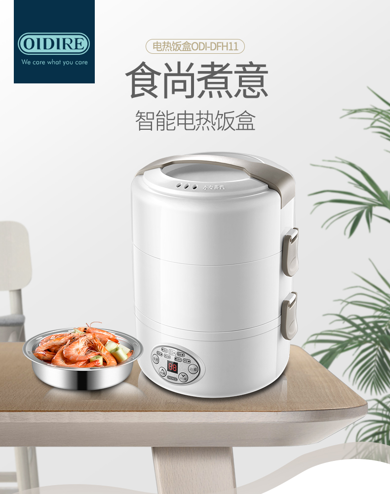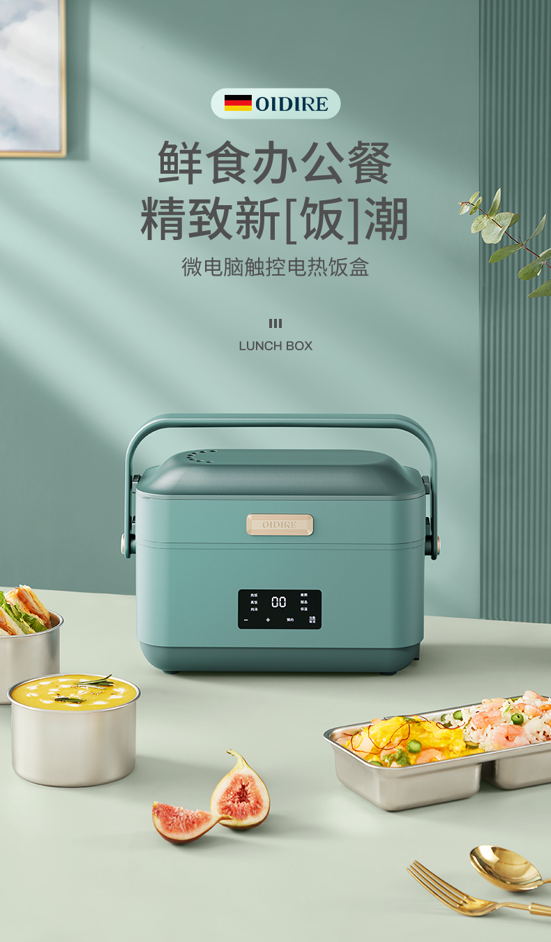 德國(guó) OIDIRE 電熱飯盒 加熱飯盒三層不銹鋼內(nèi)膽插電蒸煮保溫上班族便攜熱飯器密封保鮮迷你飯煲 ODI-FH18C 希瑟藍(lán) 智能預(yù)約款 自營(yíng)