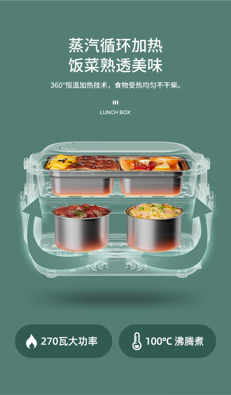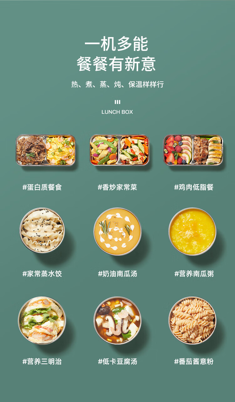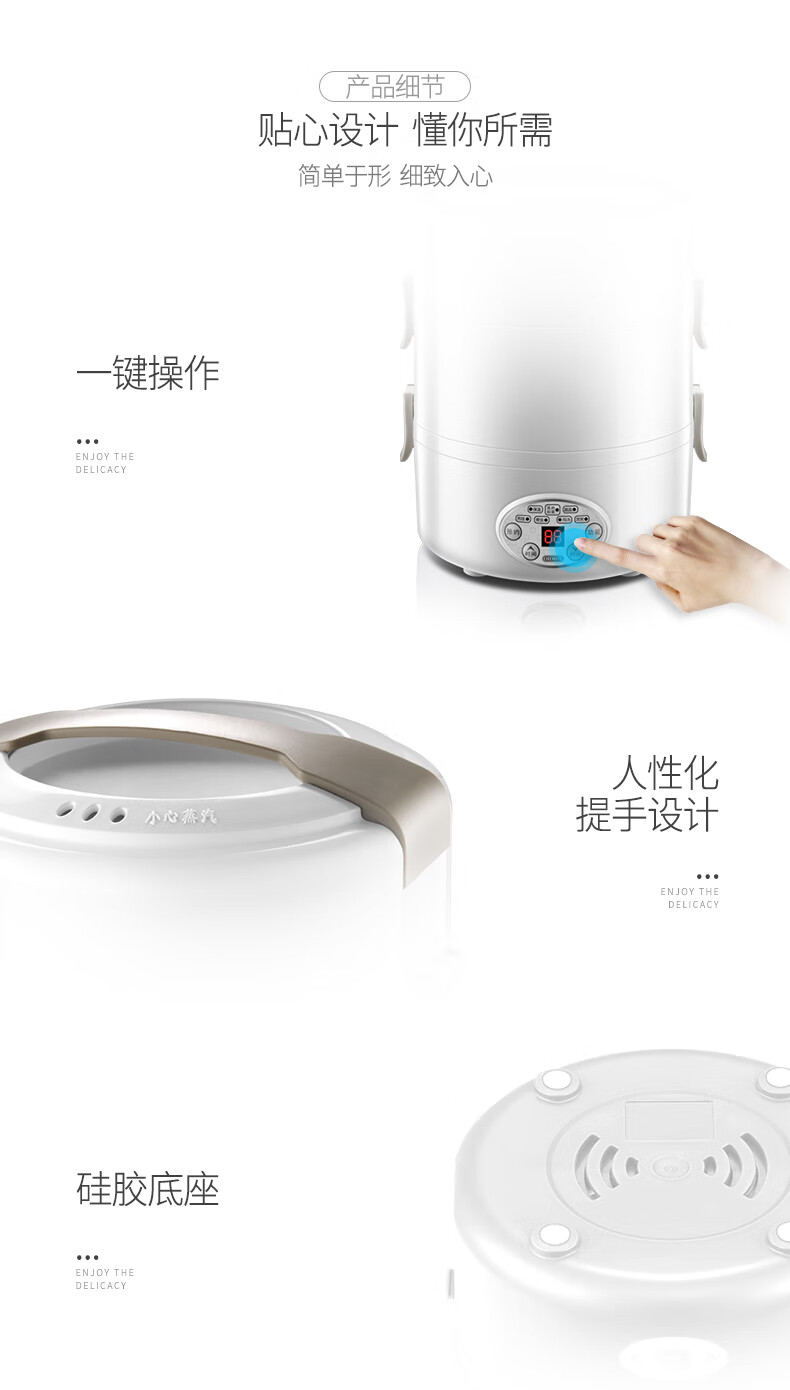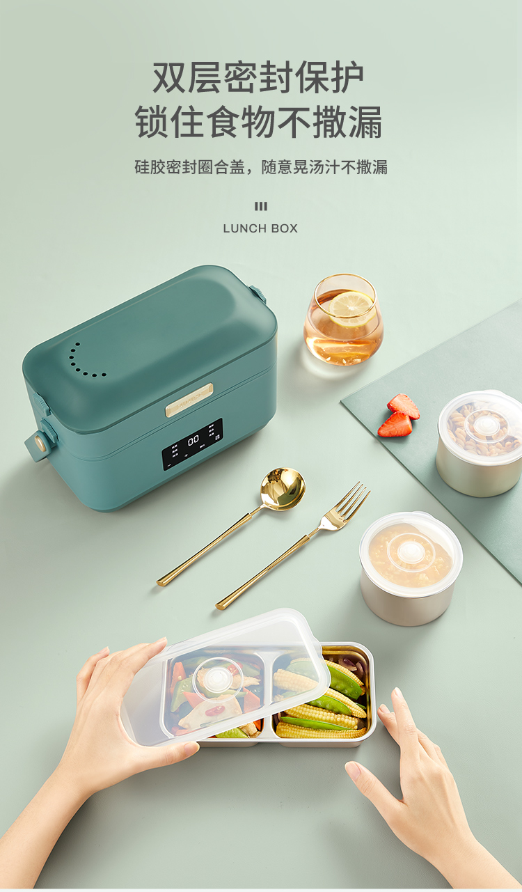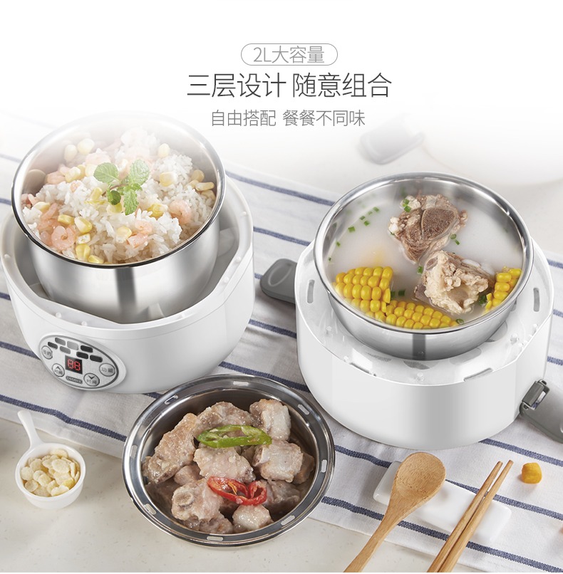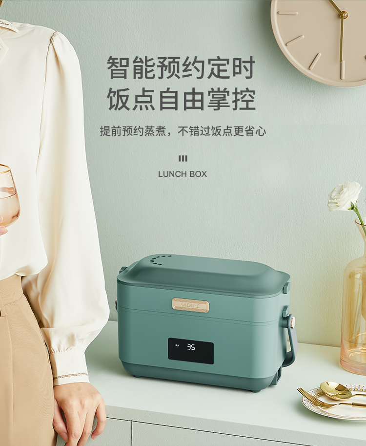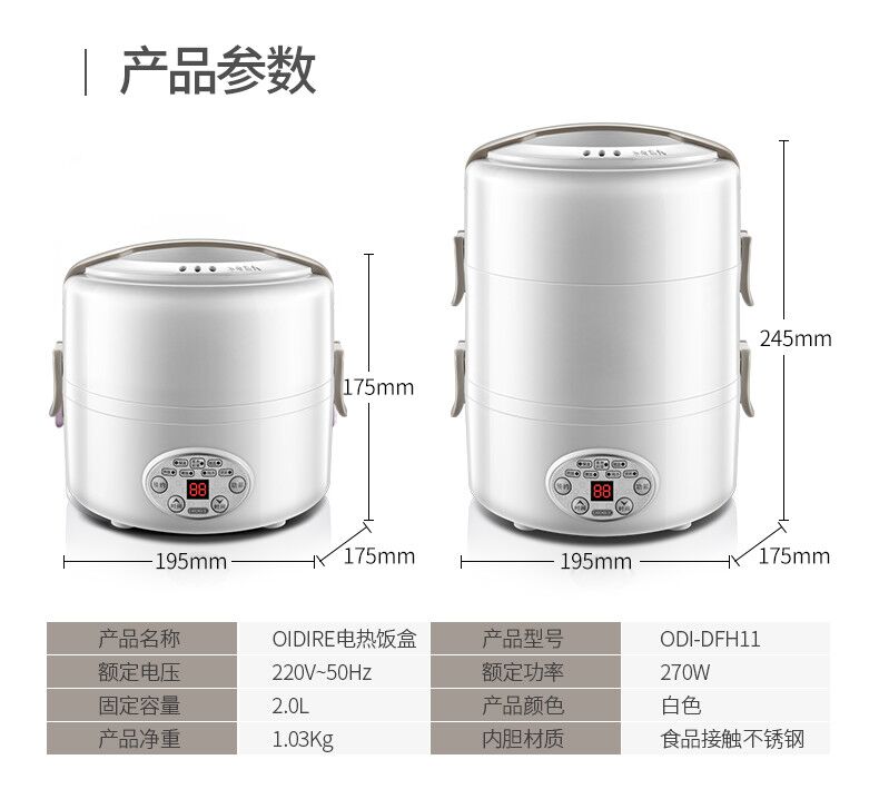 德國(guó) OIDIRE 電熱飯盒 加熱飯盒三層不銹鋼內(nèi)膽插電蒸煮保溫上班族便攜熱飯器密封保鮮迷你飯煲 ODI-FH18C 希瑟藍(lán) 智能預(yù)約款 自營(yíng)
