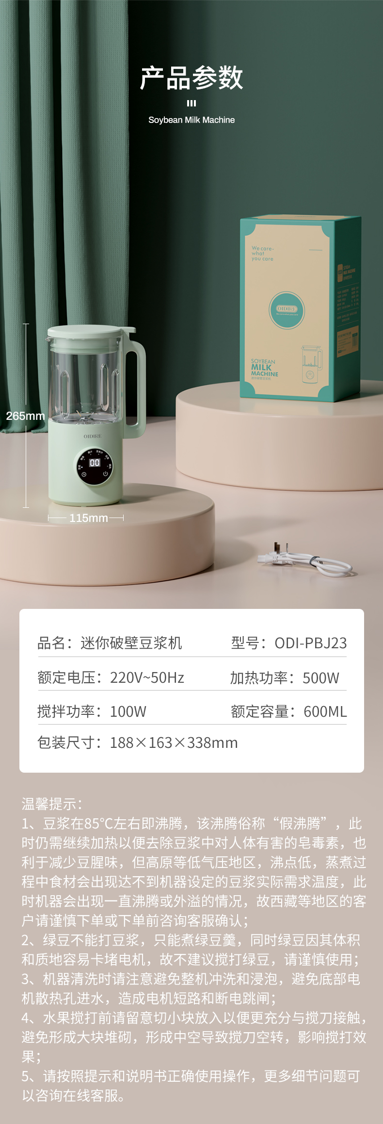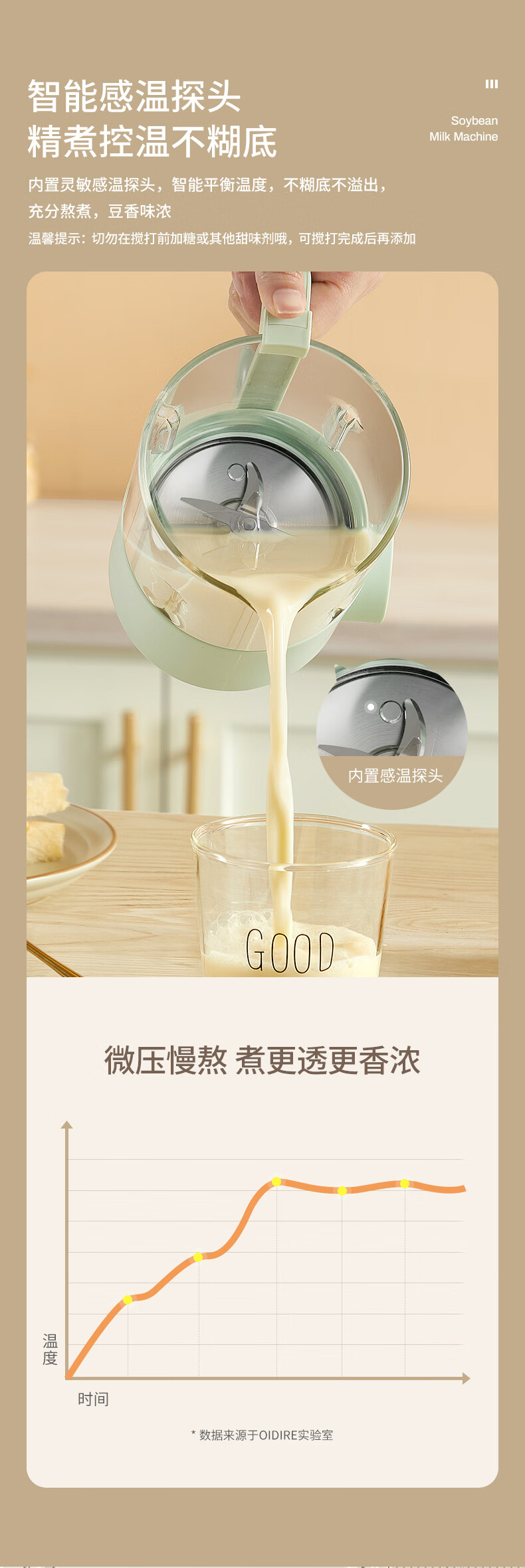 德國 OIDIRE 豆?jié){機 迷你小型家用破壁機 免過濾破壁迷你料理機輔食機早餐機 全自動免煮攪拌機 ODI-PBJ123 大容量款 自營