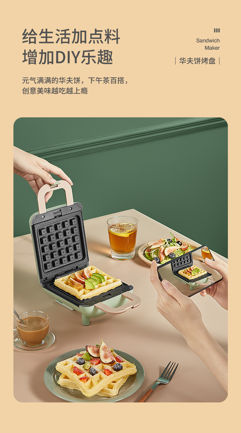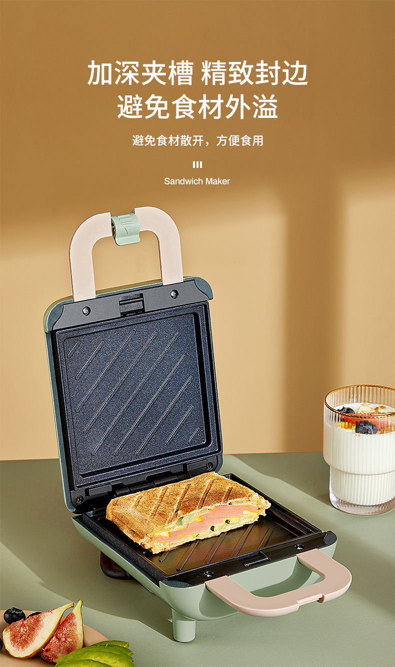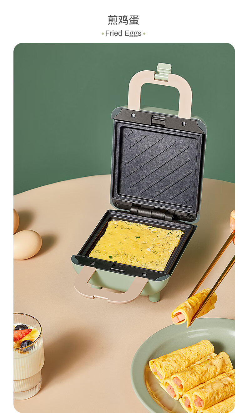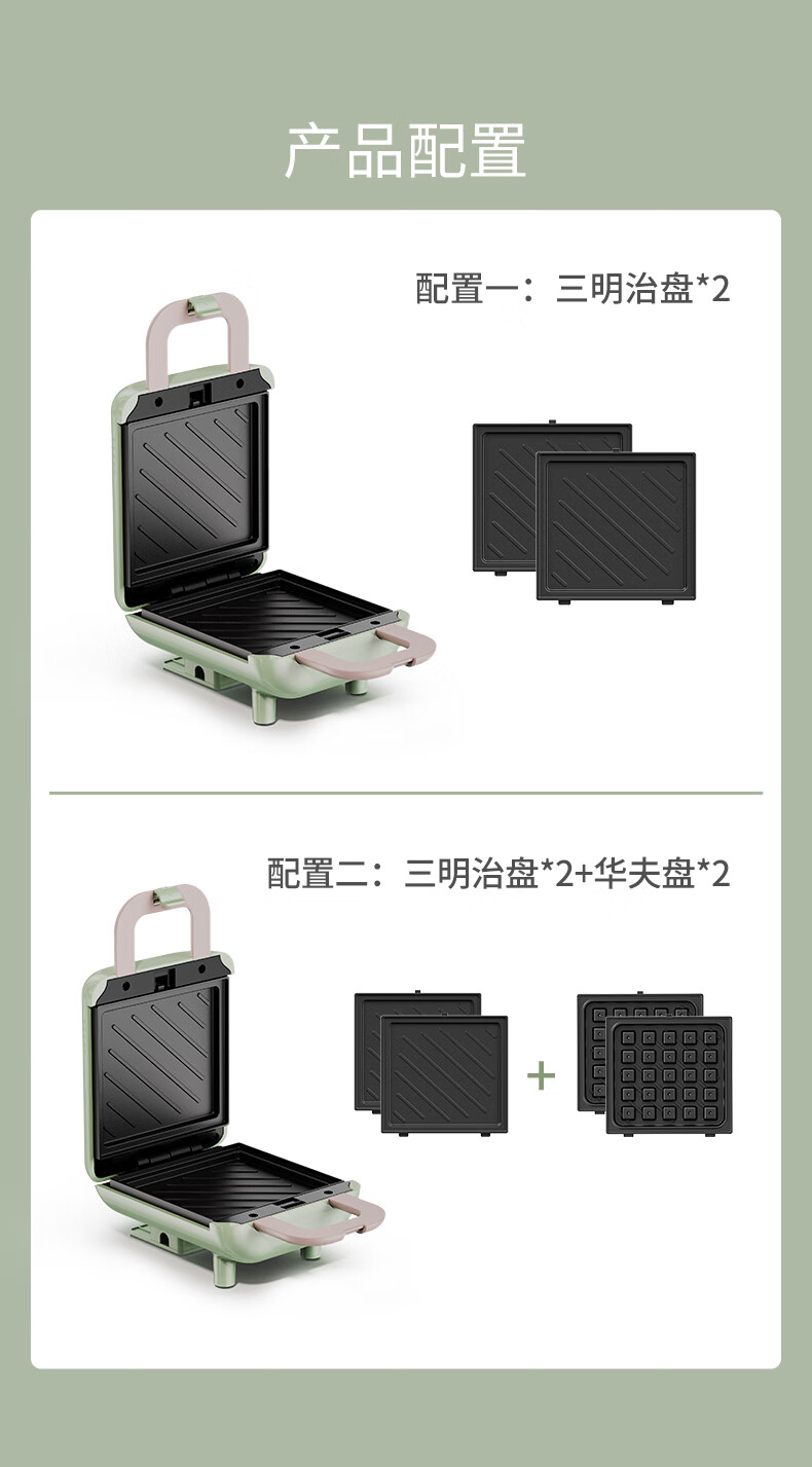 德國 OIDIRE 電餅鐺 三明治機(jī) 家用早餐機(jī) 華夫餅機(jī) 可拆洗輕食機(jī) 雙面壓烤機(jī)華夫餅機(jī) ODI-SMZ01 松柏綠 標(biāo)準(zhǔn)款 自營
