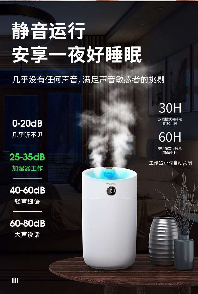 沃品(WOPOW)hm10雙噴加濕器 3L大容量輕音便捷臥室家用辦公室桌面迷你 黃色 自營(yíng)