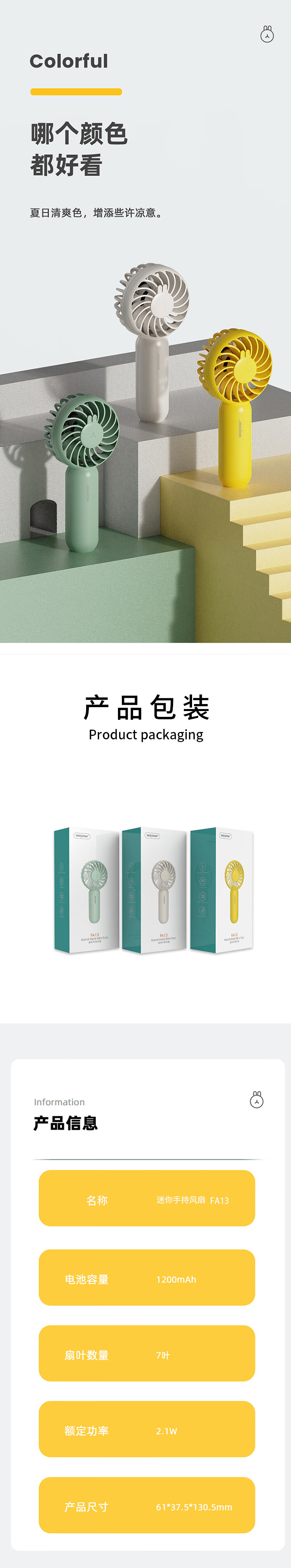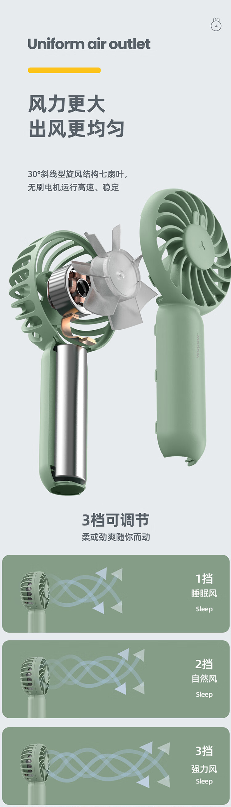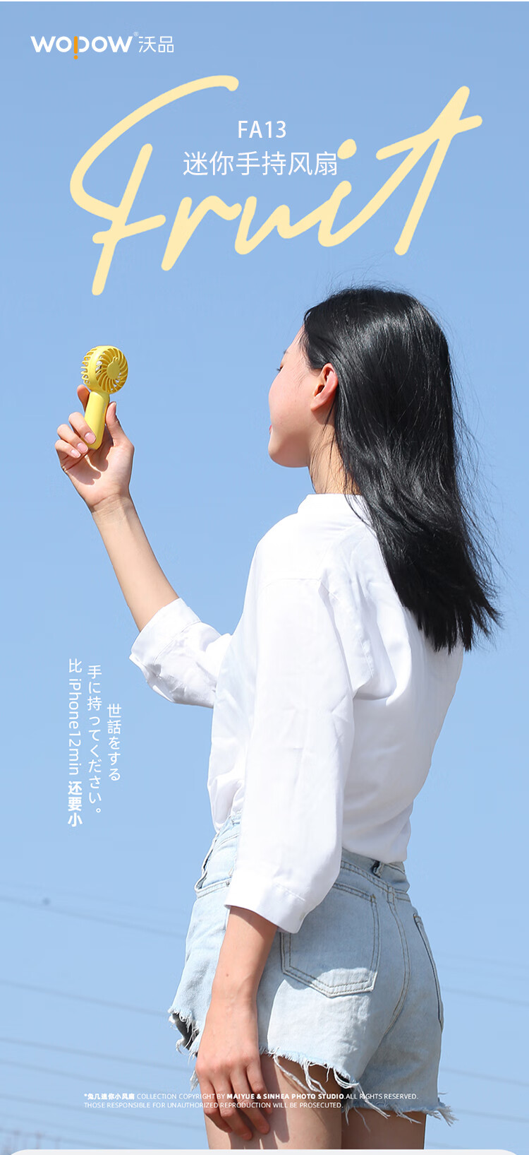WOPOW沃品迷你手持小風扇FA13 戶外手拿隨身便攜式可充電大風力電池辦公室學(xué)生桌面宿舍臺式小電扇吹飯電風扇 自營