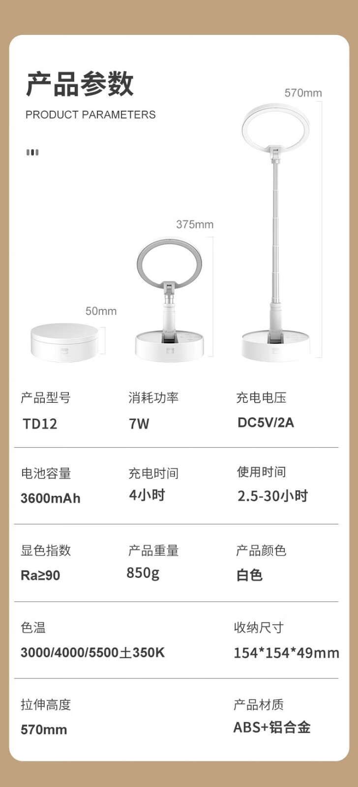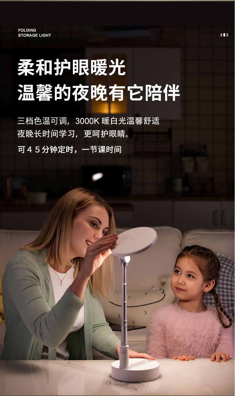 沃品(WOPOW) 臺燈可伸縮式LED臺燈工作繪圖插電式伸縮折疊燈TD12 白色 自營