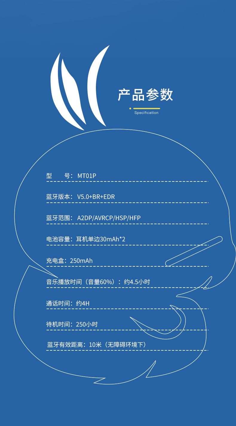 沃品(WOPOW)MT01P真無(wú)線藍(lán)牙耳機(jī)分體式耳機(jī)藍(lán)牙5.0 適用于安卓蘋果 藍(lán)色 自營(yíng)