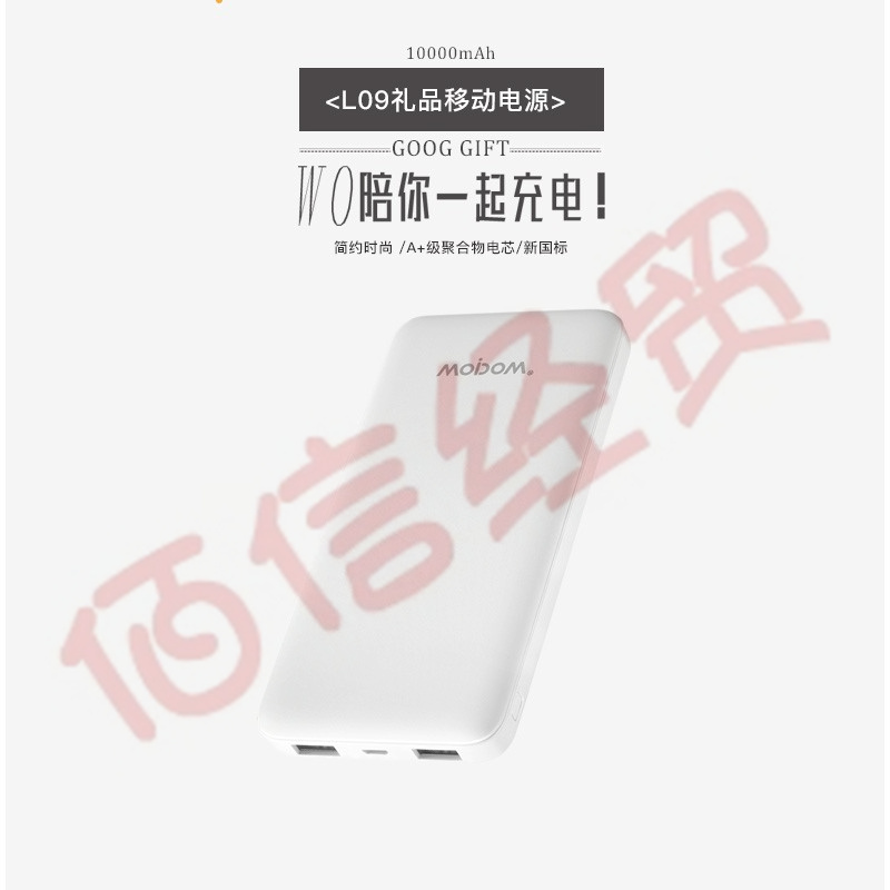wopow /沃品 L09 10000毫安時輕薄小巧充電寶便攜式移動電源適用安卓蘋果手機 白色 自營
