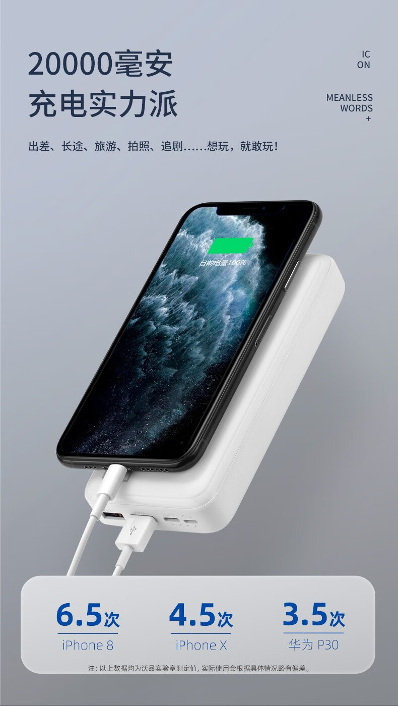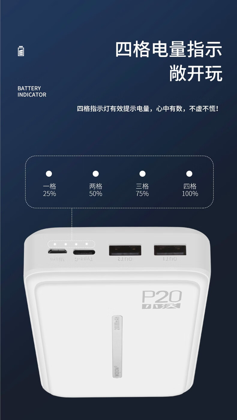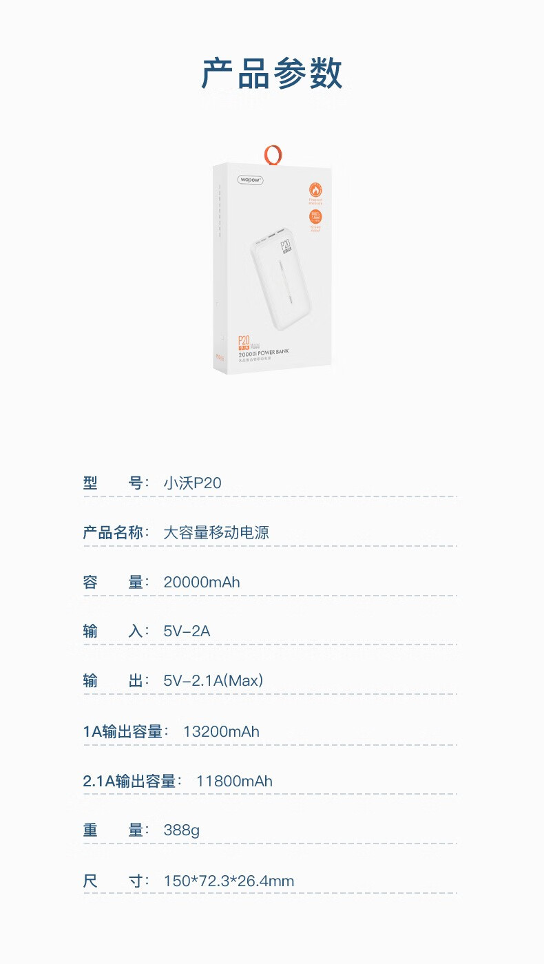 大容量沃品移動(dòng)電源小沃P20/20000毫安移動(dòng)電源/大容量移動(dòng)電源 白色 20000毫安 自營(yíng)