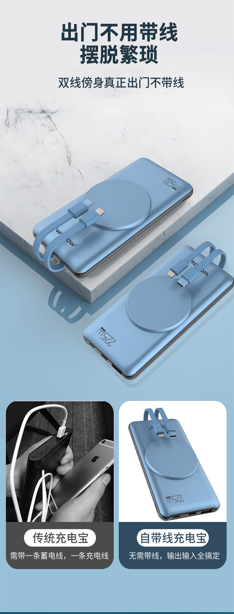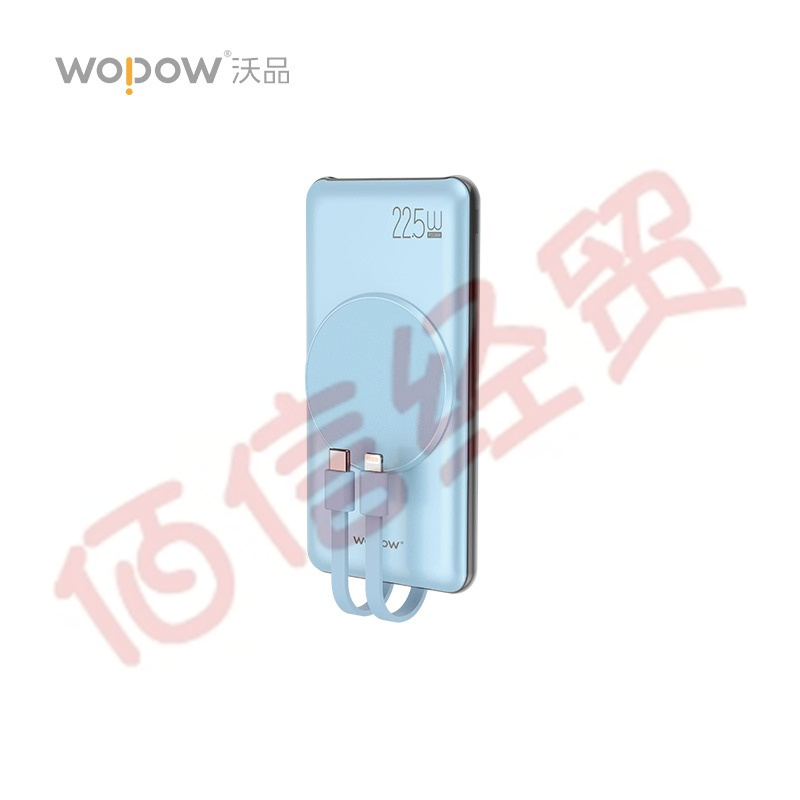 沃品(WOPOW)SQ16磁吸充電寶自帶線22.5w快充移動電源帶雙線便攜式 淺藍(lán)色 10000mAh 自營