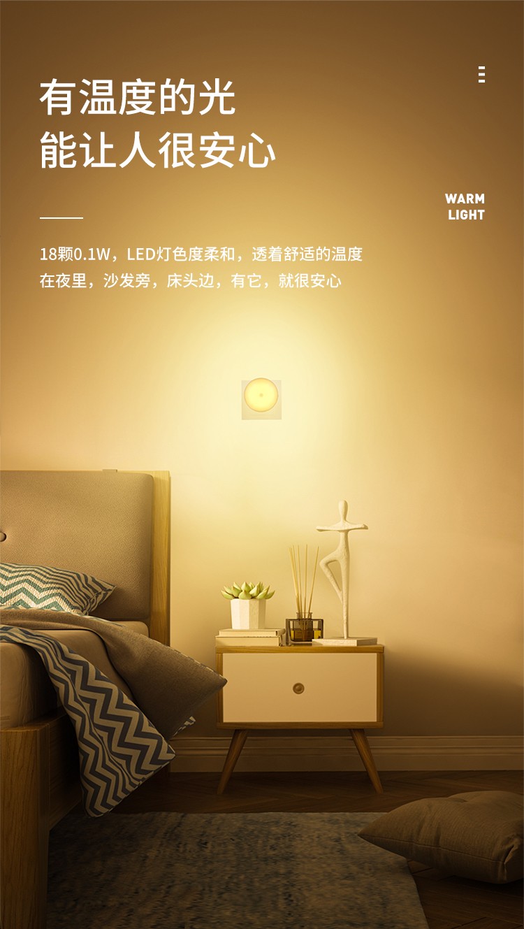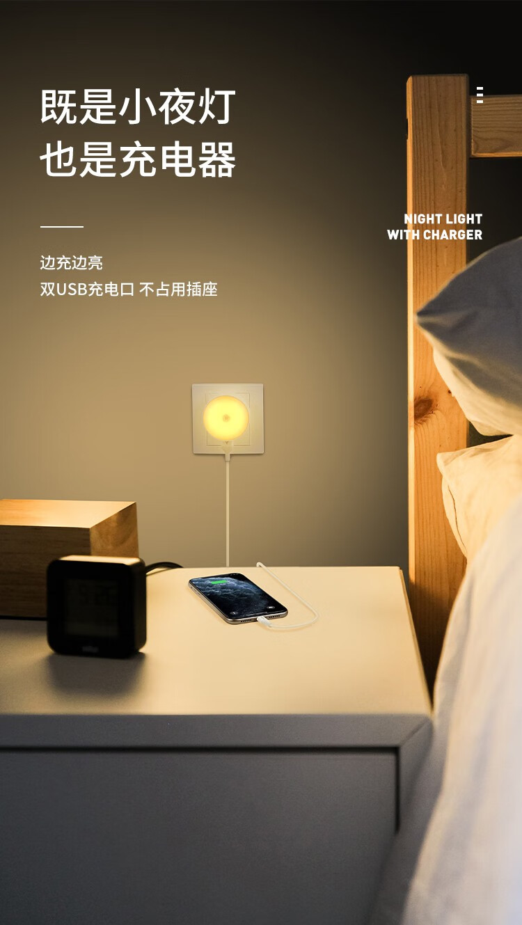 沃品(WOPOW)小夜燈充電器一體式紅外智能感應(yīng)小夜燈NL01 白色 自營(yíng)