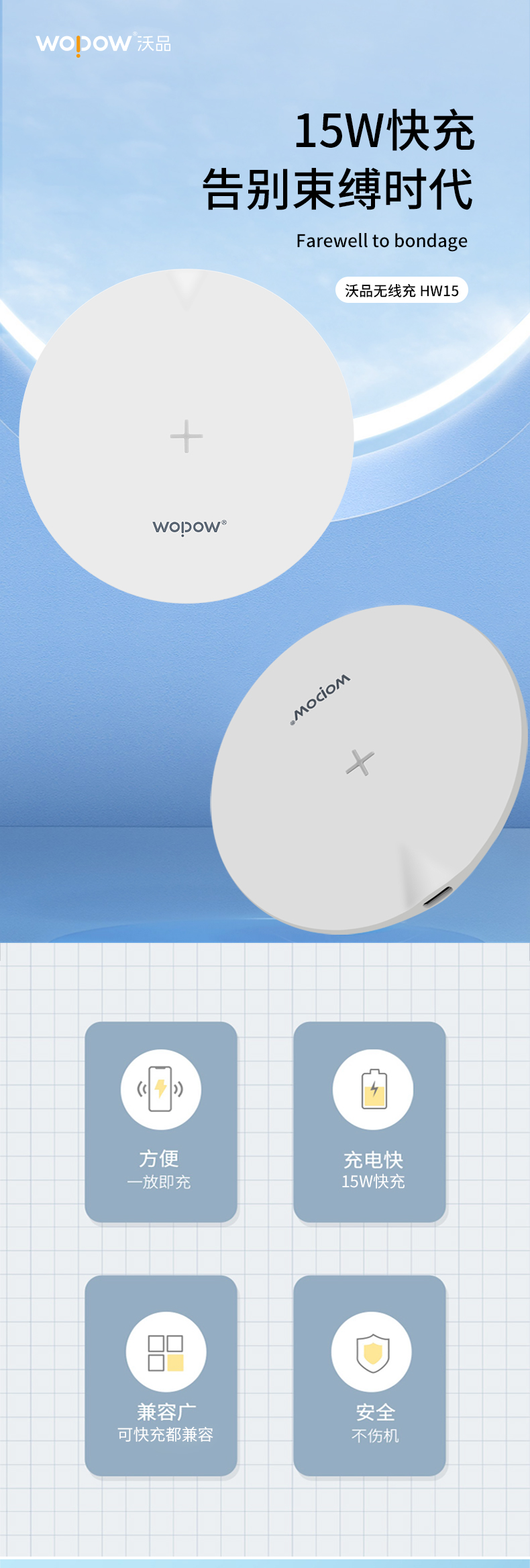 沃品(WOPOW)無線充電器15W快充無線充HW15 白色 自營