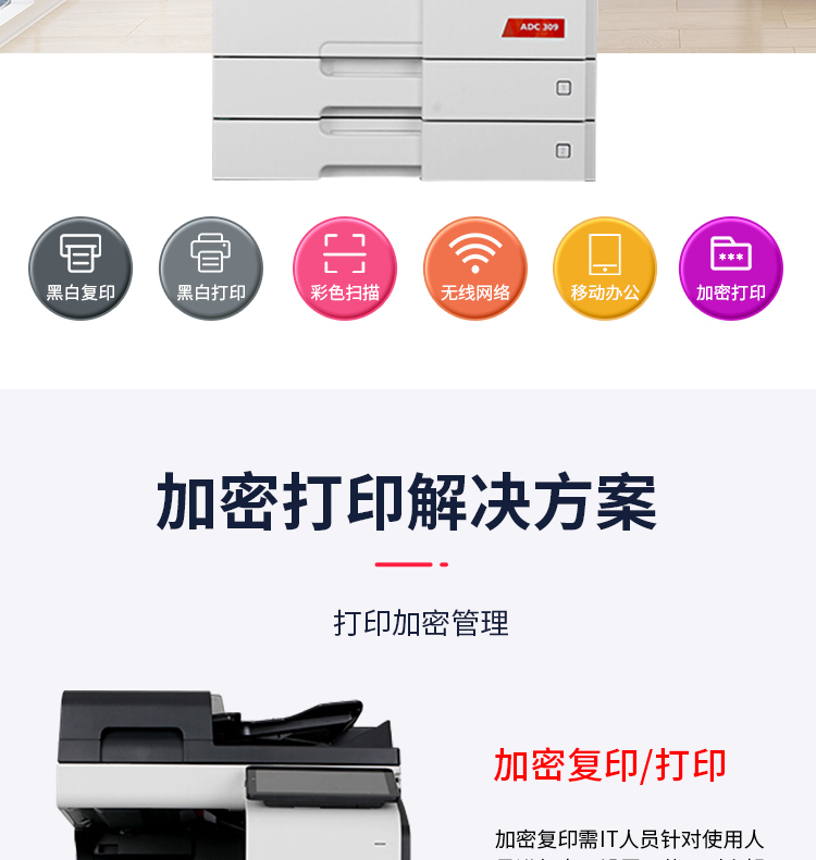 震旦(AURORA)ADC309彩色數(shù)碼復(fù)合機(jī) A3激光打印/復(fù)印/掃描 智能身份識(shí)別方案無(wú)線(xiàn)版(輸稿器+雙紙盒+無(wú)線(xiàn)) 自營(yíng)