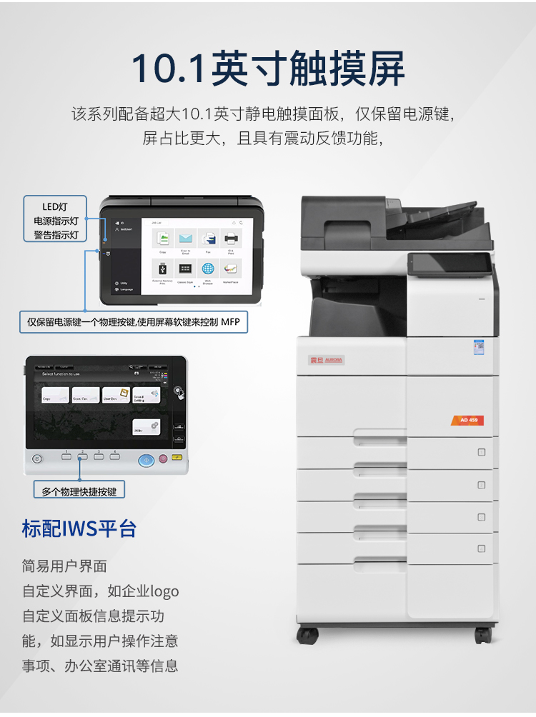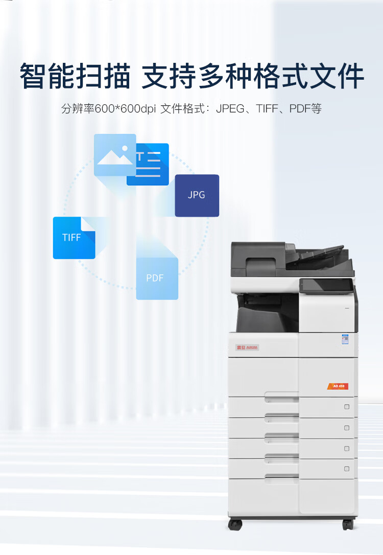 震旦(AURORA)AD459 A3黑白多功能數(shù)碼激光復(fù)合機(jī)(含雙面同步掃描輸稿器+四紙盒+手送托盤+工作臺) 自營