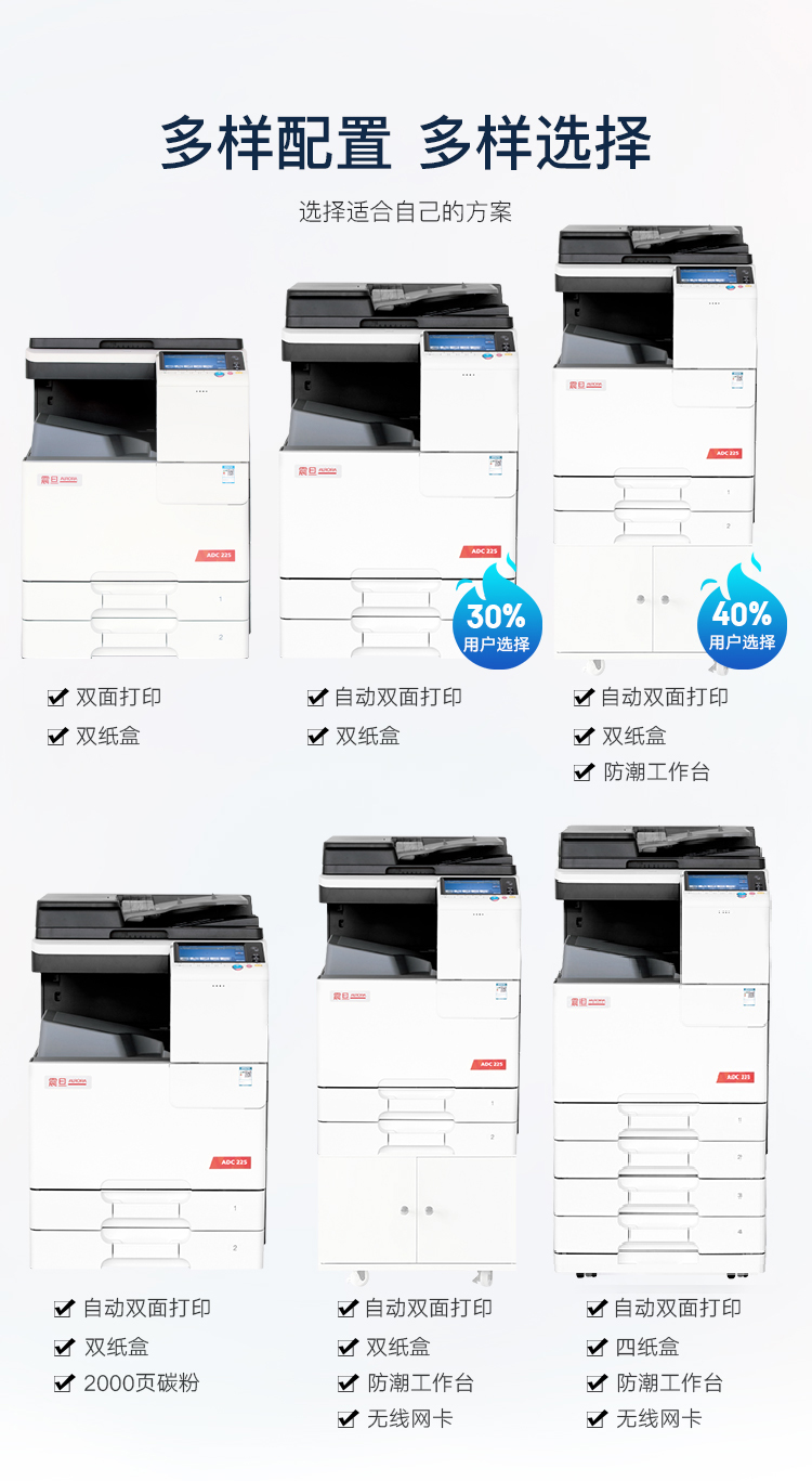 震旦(AURORA)ADC225 A3彩色多功能數(shù)碼復(fù)合機(jī)(含雙面自動(dòng)輸稿器+雙紙盒+網(wǎng)卡+工作臺(tái))免費(fèi)上門(mén)安裝售后 自營(yíng)