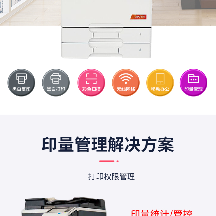 震旦(AURORA)ADC225 彩色數(shù)碼復合機 A3打印/復印/掃描 辦公印量管控方案(輸稿器+雙紙盒+國產(chǎn)工作臺) 自營