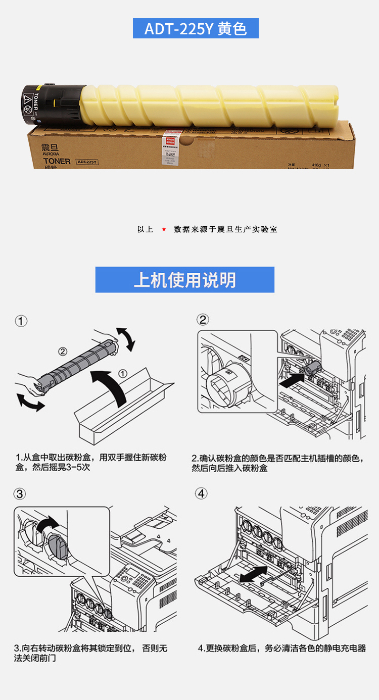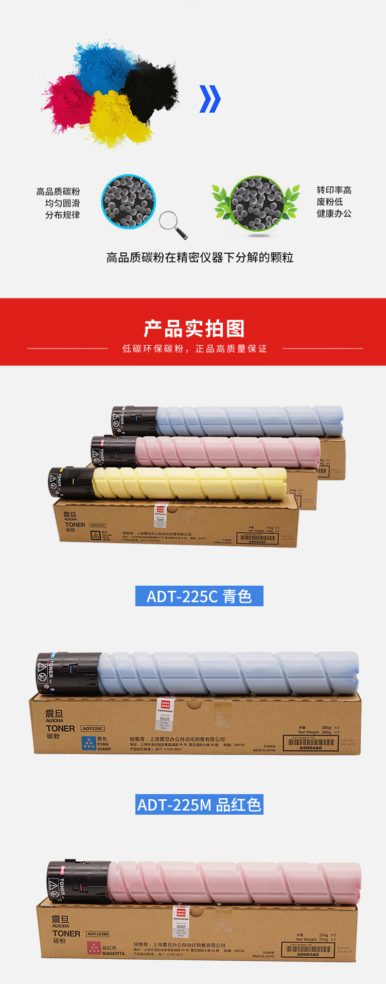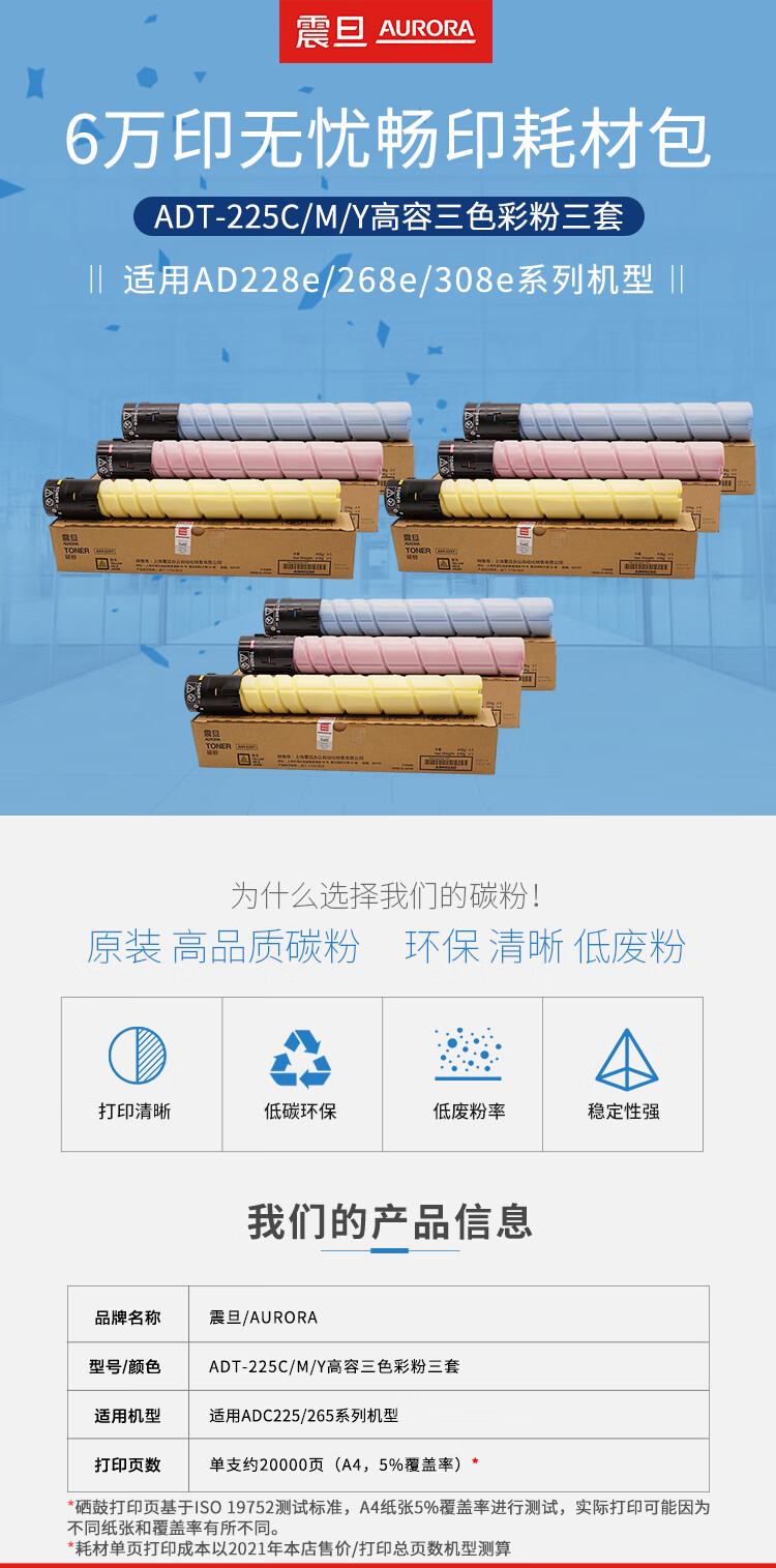 震旦(AURORA)ADC225 6萬印彩色專享無憂暢印耗材包 ADT-225C/M/Y高容三色彩粉三套 自營