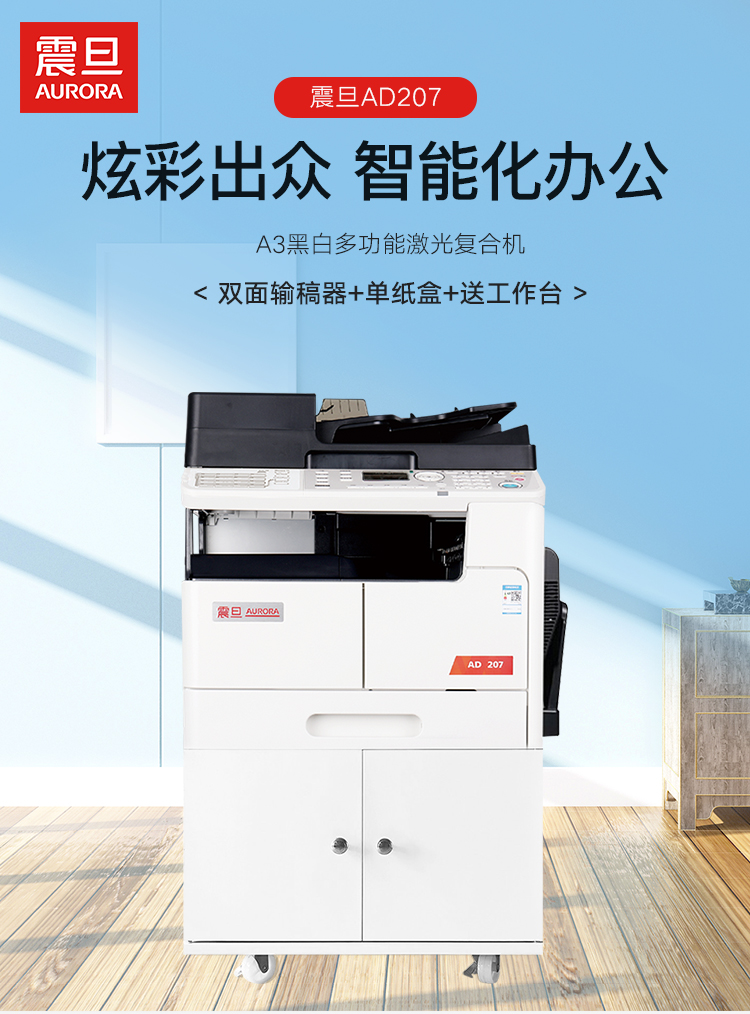 震旦(AURORA)AD207 A3黑白多功能數(shù)碼復合機(含雙面輸稿器+單紙盒+工作臺)免費上門安裝售后 自營