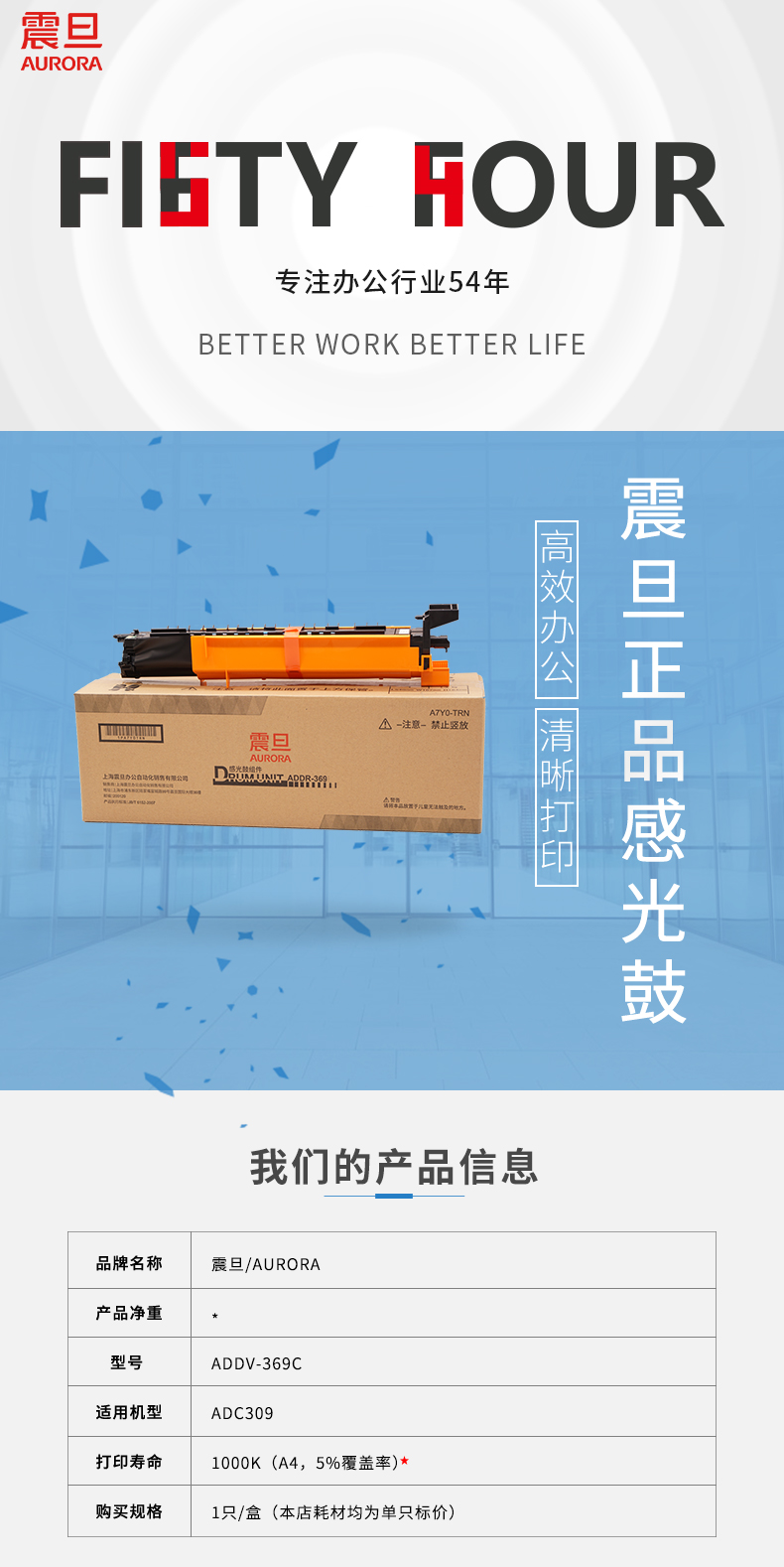 震旦(AURORA)ADDV-369C 青色顯影組件(適用于ADC309)約100萬頁 自營