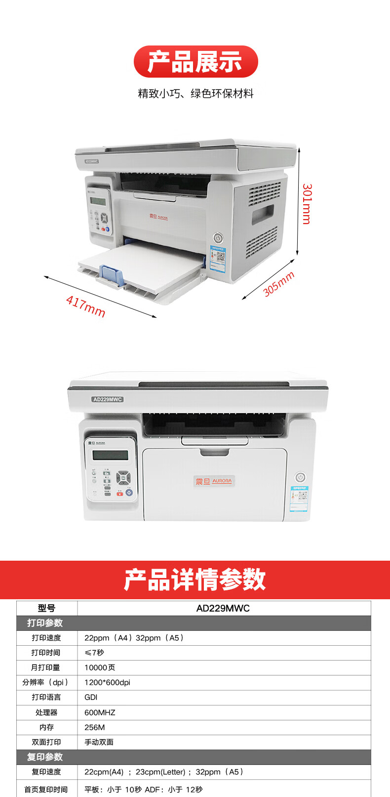 震旦(AURORA)AD229MWC A4黑白激光多功能一體機(復印/打印/掃描) 工業(yè)設備 辦公打印一體機 自營