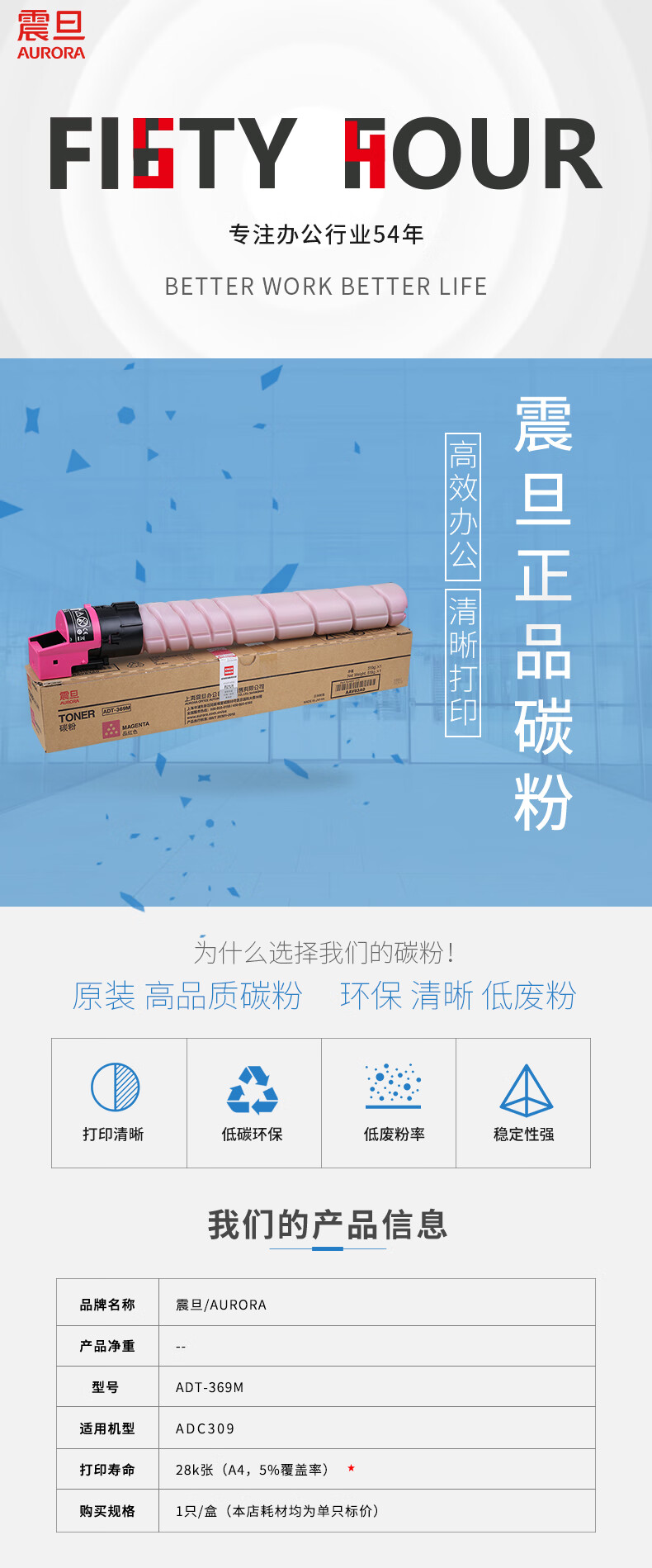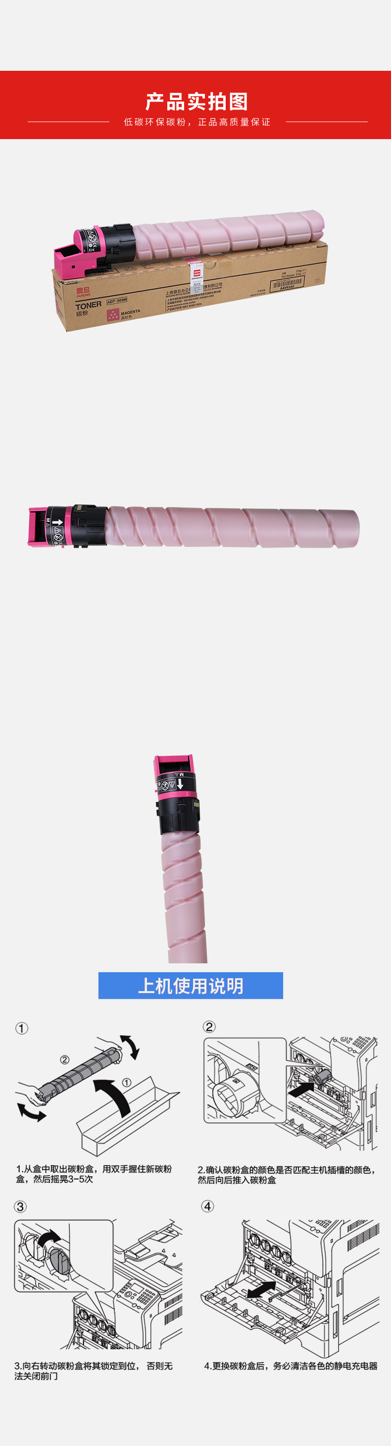 震旦(AURORA)ADT-369M 品紅色碳粉(適用于ADC309)約28000頁 自營