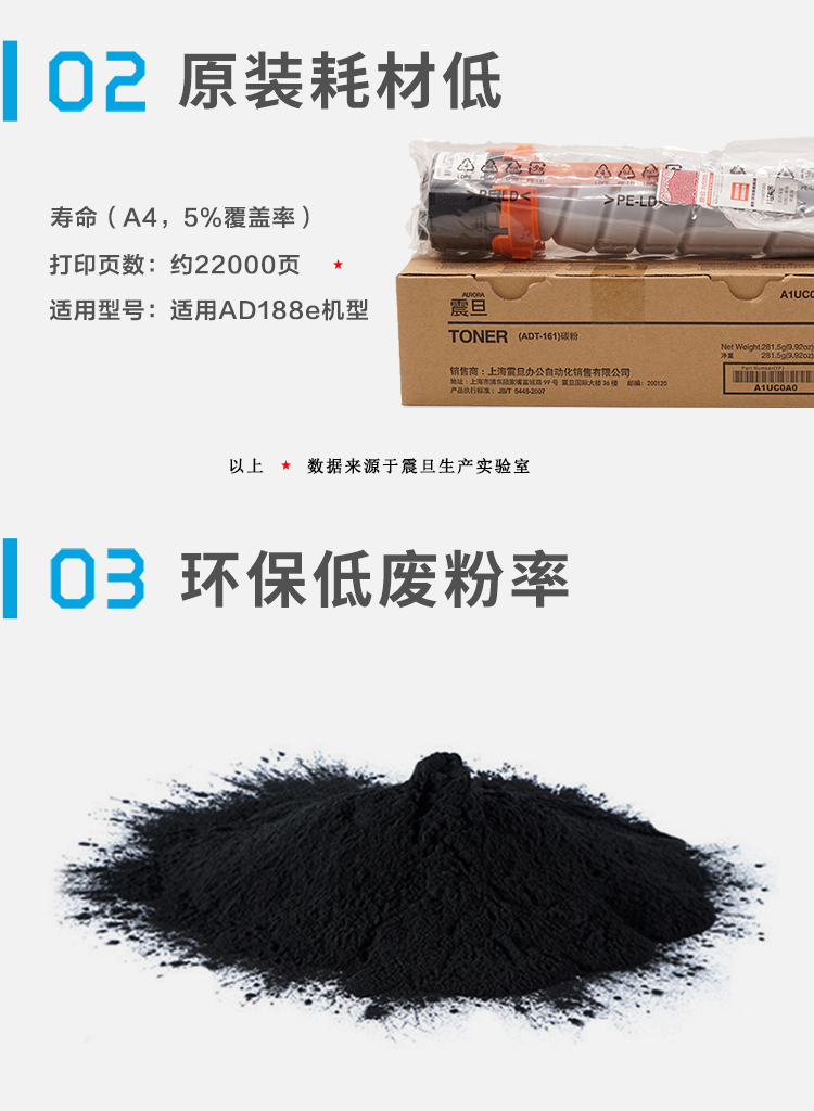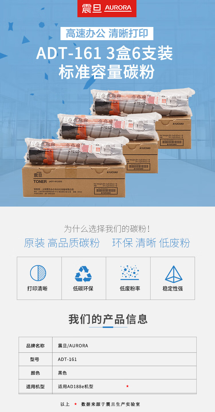 震旦(AURORA)ADT-161 標(biāo)準(zhǔn)容量碳粉 三盒6支裝(適用AD188e/AD188en機(jī)型) 自營