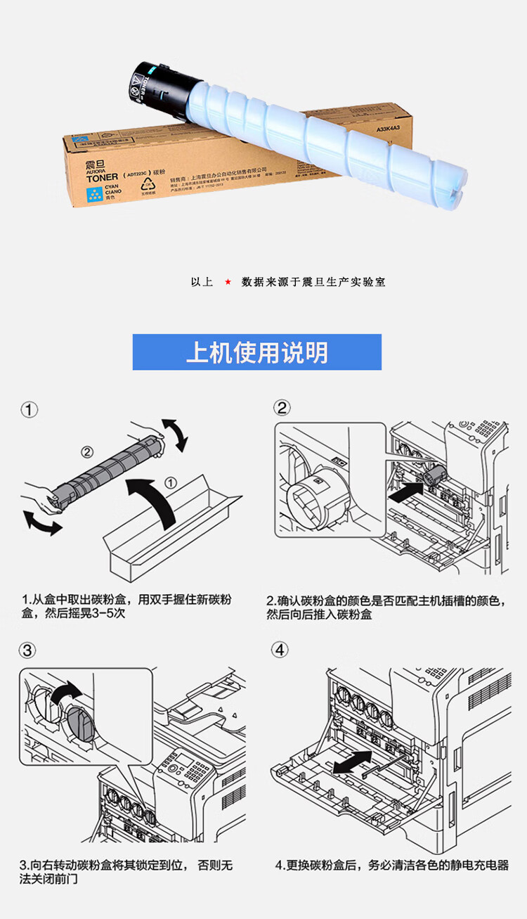 震旦(AURORA)ADT-223C 青色高容量碳粉(適用ADC223/ADC223S/ADC283機(jī)型)約25000頁 自營