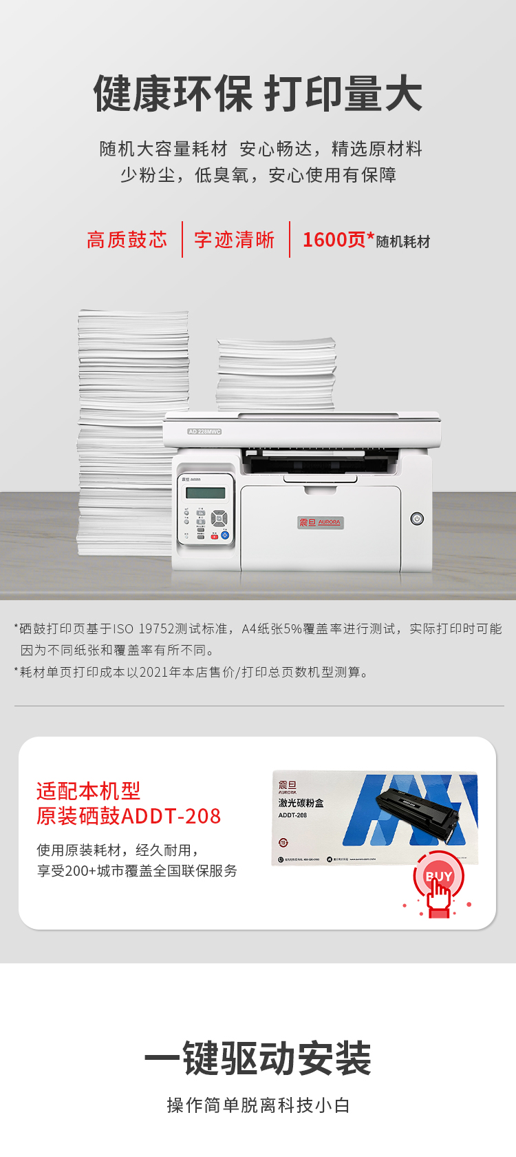 震旦(AURORA) AD228MWC 黑白激光無線打印機復印掃描一體機 家庭作業(yè) 商務辦公 自營