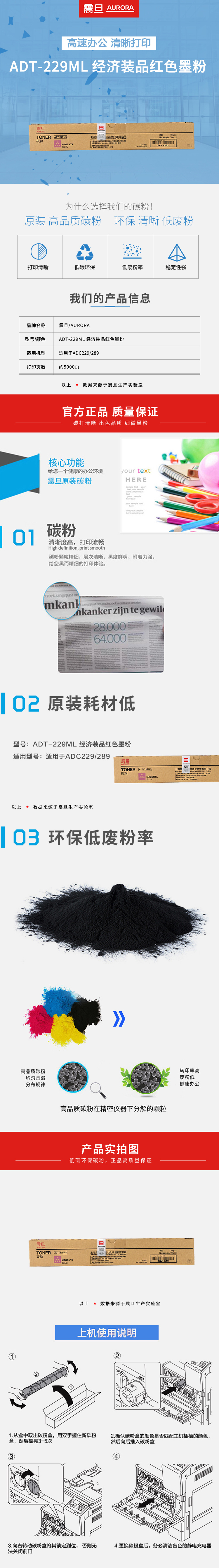 震旦(AURORA)ADT-229ML 經(jīng)濟(jì)裝品紅色墨粉(適用于ADC229/289)約5000頁 自營