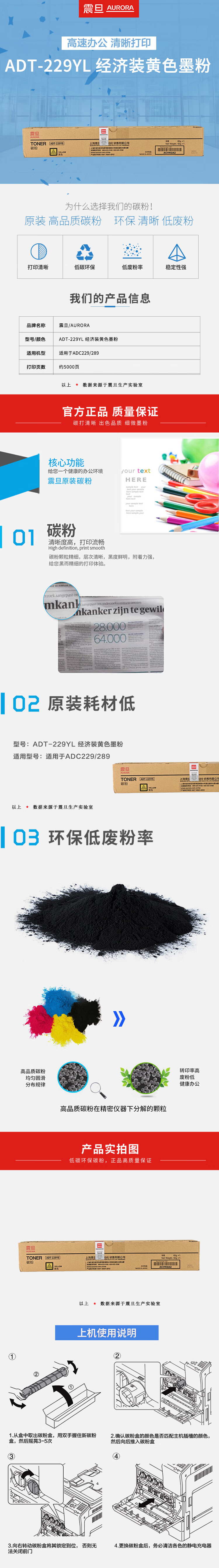 震旦(AURORA)ADT-229YL 經(jīng)濟(jì)裝黃色墨粉(適用于ADC229/289)約5000頁(yè) 自營(yíng)
