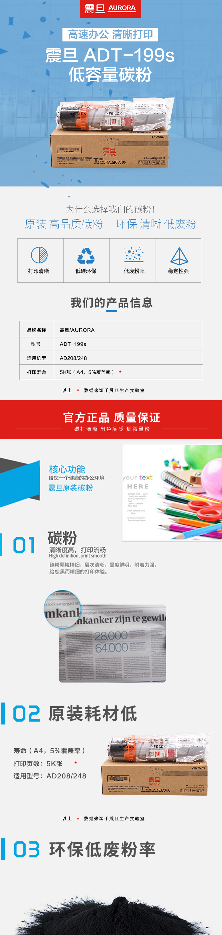 震旦(AURORA)ADT-199S低容量碳粉(適用AD208/248機(jī)型)約5000頁 自營