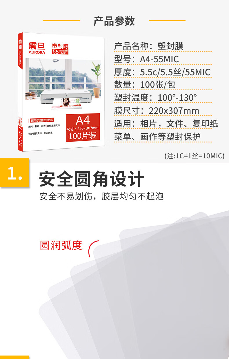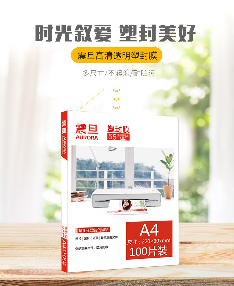 震旦AURORA A4-55MIC透明高清專用護(hù)卡膜/塑封膜220x307mm(100張/包) 自營(yíng)